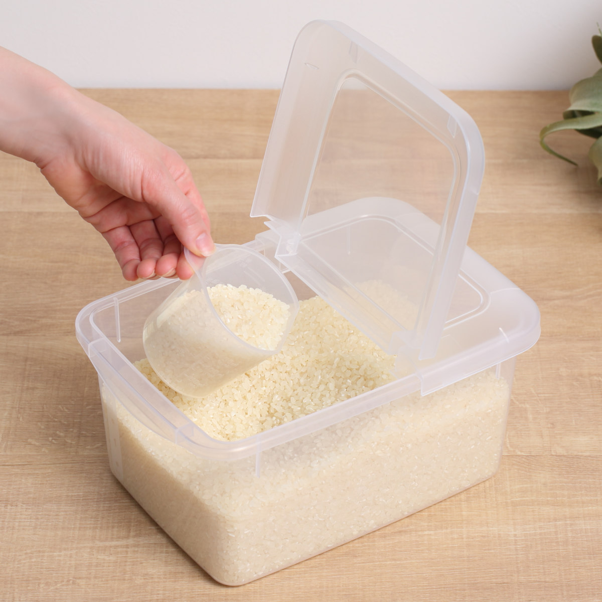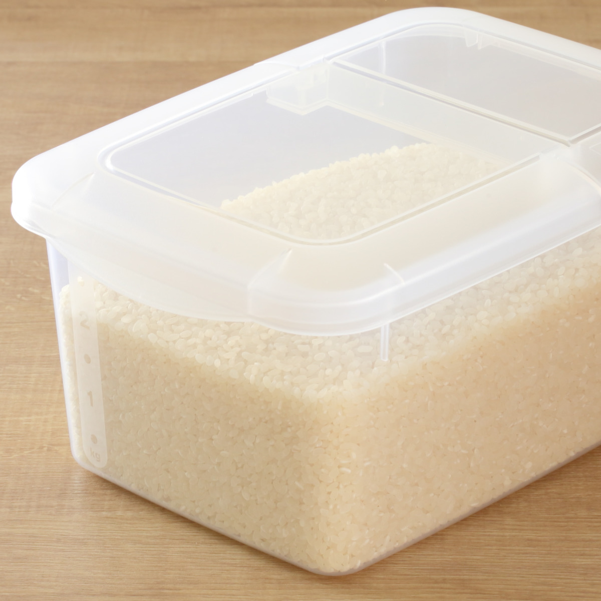 本体・フタが透明で目盛が付いているので、お米の残量が一目で分かります。中の状態が見えることで、お米の買い足しのタイミングもわかりやすく買い忘れ防止にもなります。