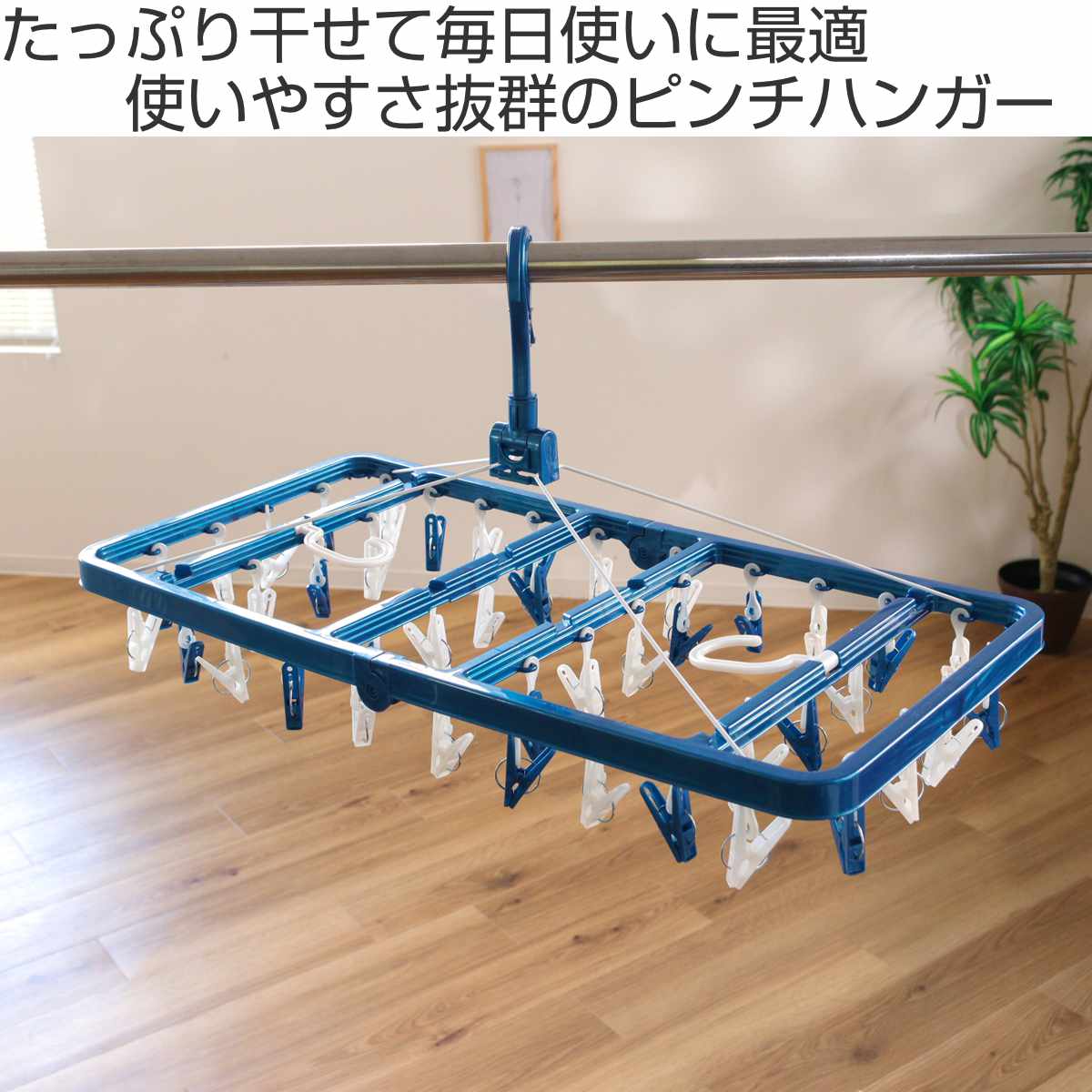 フレームの対向する場所に同じ色のピンチを配色していますので、タオルなどの渡し干しがしやすくなっています。