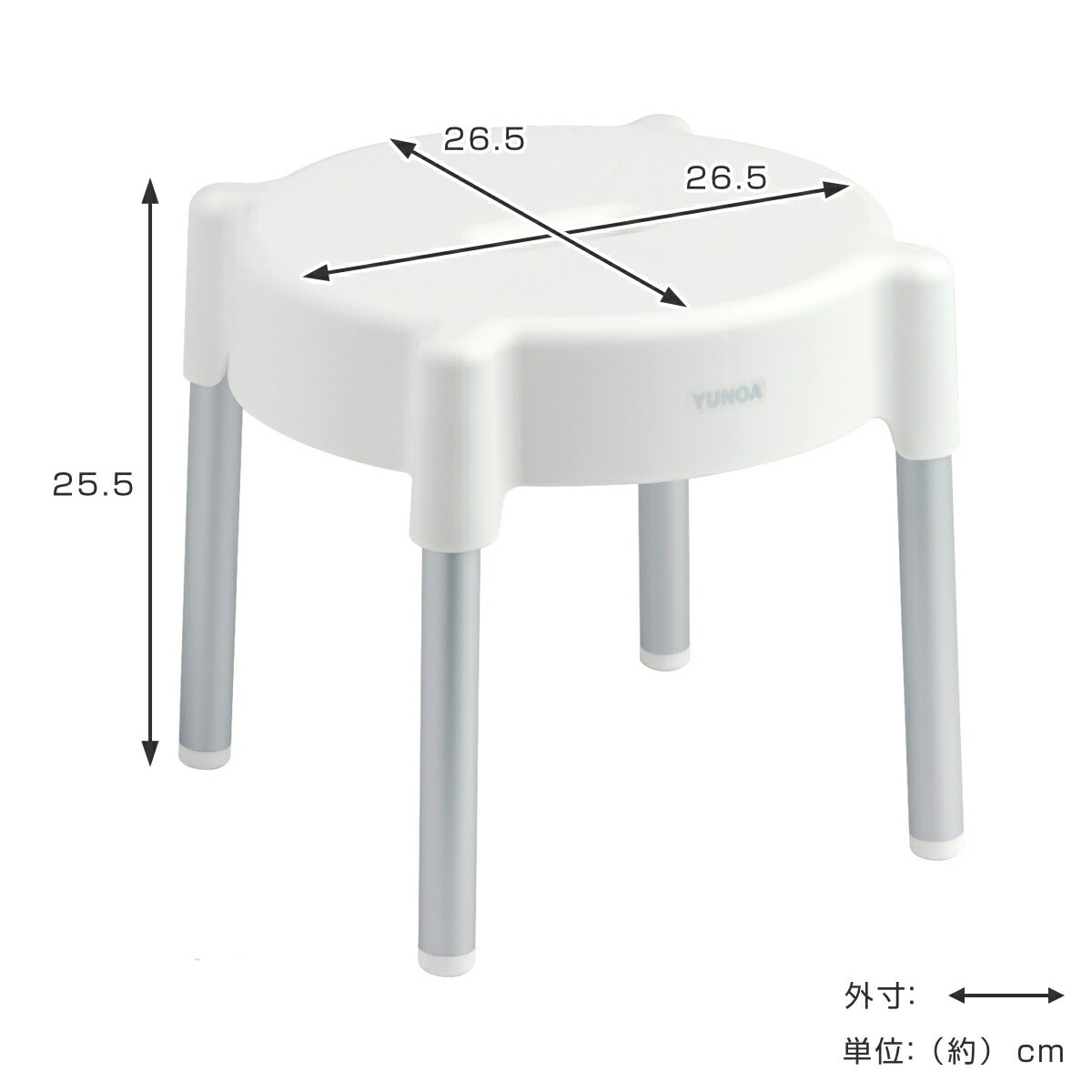 風呂椅子 ユノア アルミ 25cm ( いす 風呂イス お風呂 抗菌 防カビ 日本製 バスチェア 入浴 座面高25 ホワイト シンプル すべり止め )