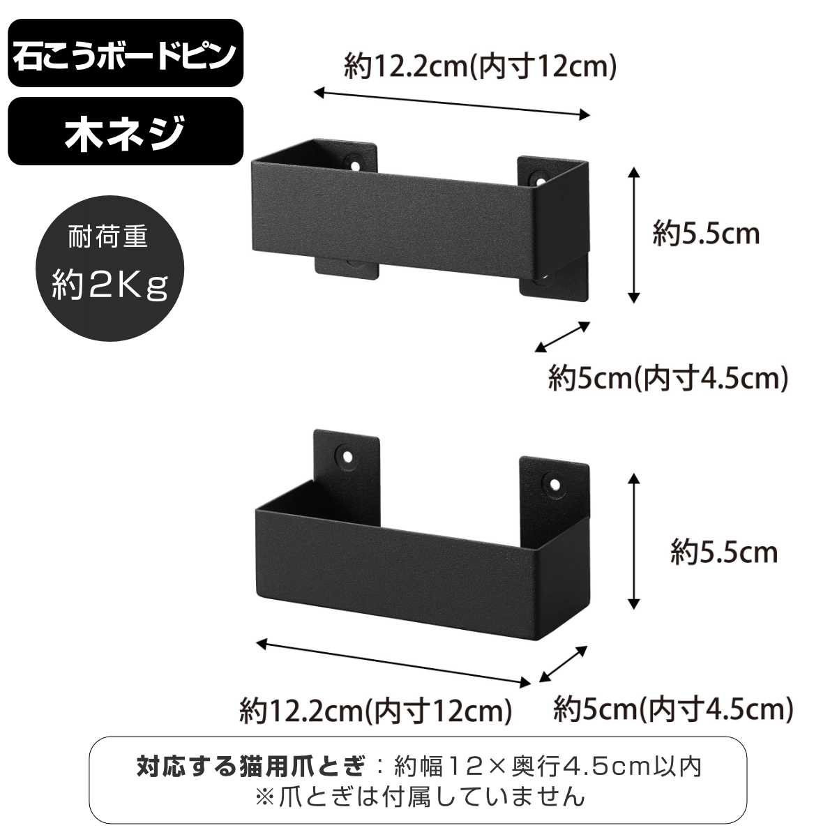 | サイズ | 約 幅12.2×奥行5×高さ5.5(cm) 上部・下部パーツ::約 幅12.2×奥行5×高さ5.5(cm) 対応する猫用爪とぎ:約 幅12×奥行4.5cm以内 |