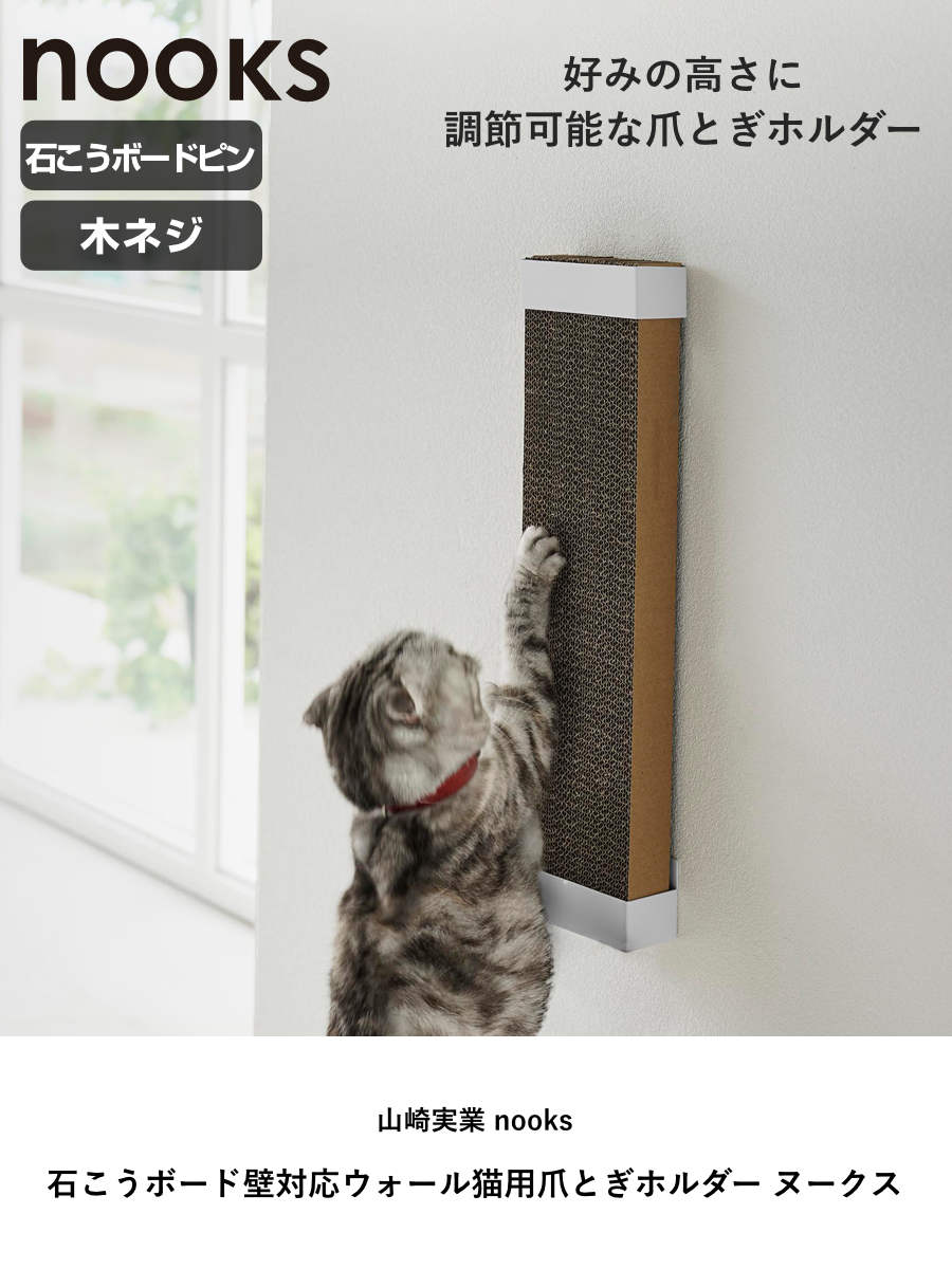 山崎実業 nooks 石こうボード壁対応ウォール猫用爪とぎホルダー ヌークス ( 4903208040969 猫用爪とぎ 爪とぎホルダー 石こうボードピン 猫用 ネコ ねこ 猫用品 ホルダー スチール製 壁用 壁 壁対応 ウォール ウォールホルダー ) 【ホワイト】