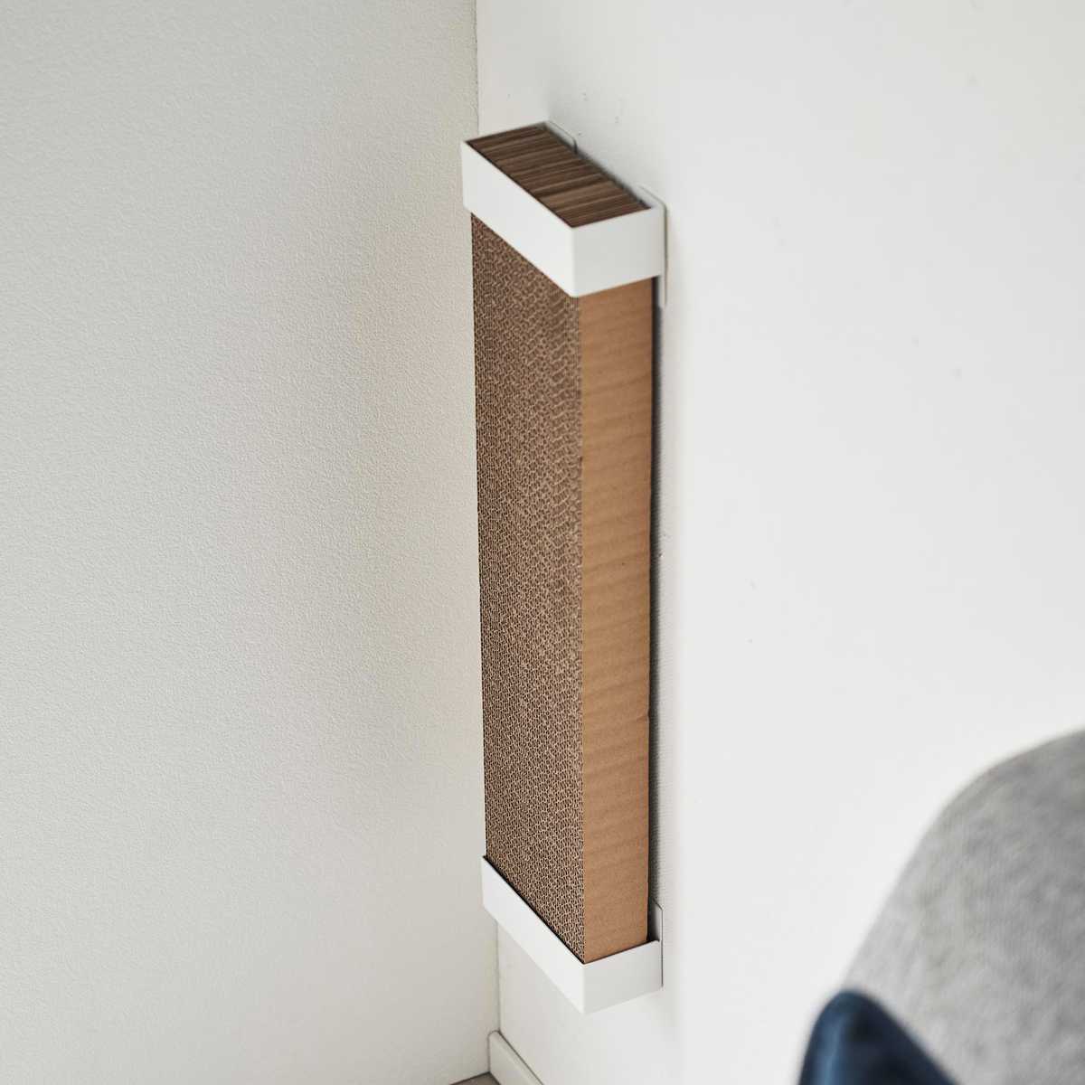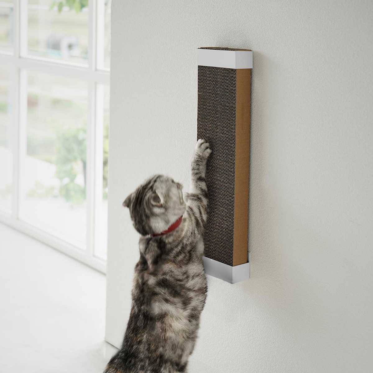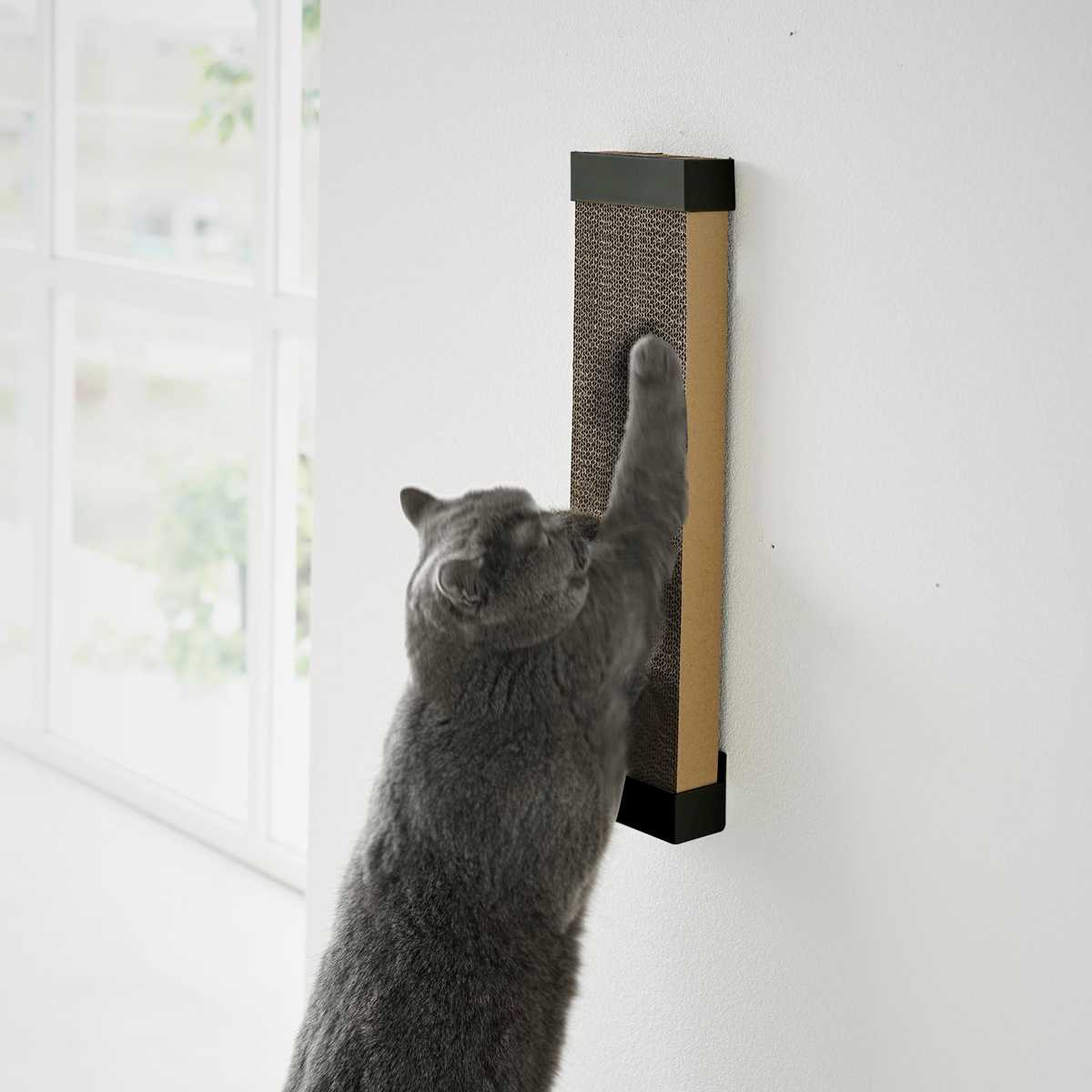 穴が目立ちにくい石こうボードピンで壁に取り付けるタイプなので、愛猫が爪とぎをしやすい高さや場所に調節できます。石こうボードピンが取り付けできない場所には付属の木ネジで固定可能です。