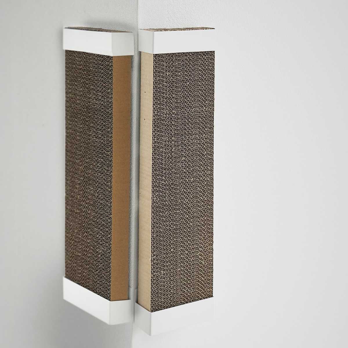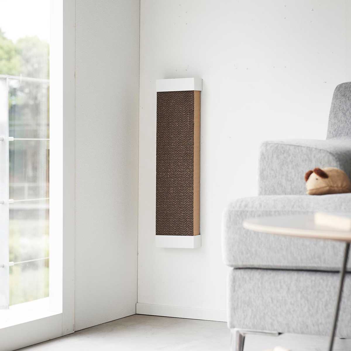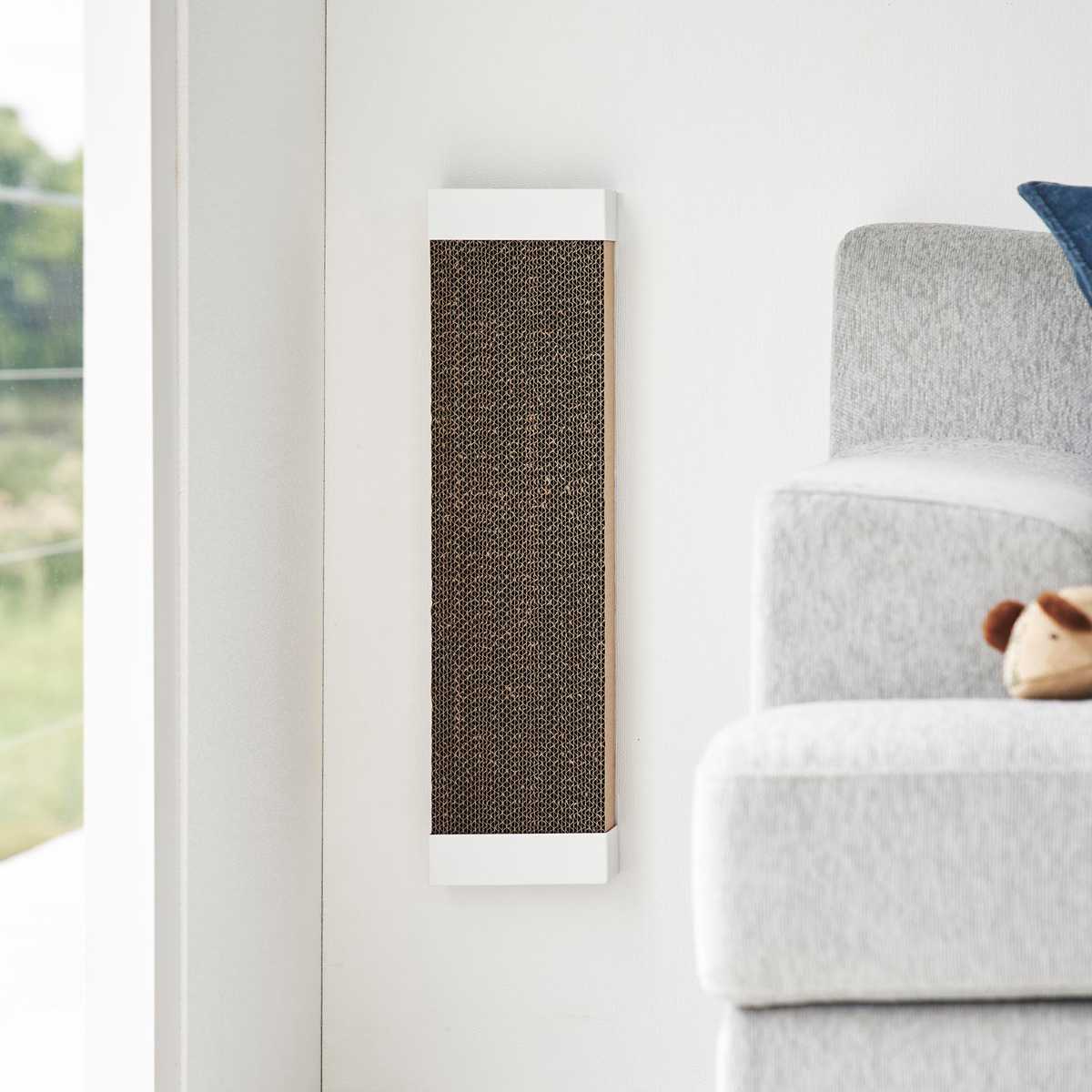 穴が目立ちにくい石こうボードピンで壁に取り付けるタイプなので、愛猫が爪とぎをしやすい高さや場所に調節できます。石こうボードピンが取り付けできない場所には付属の木ネジで固定可能です。