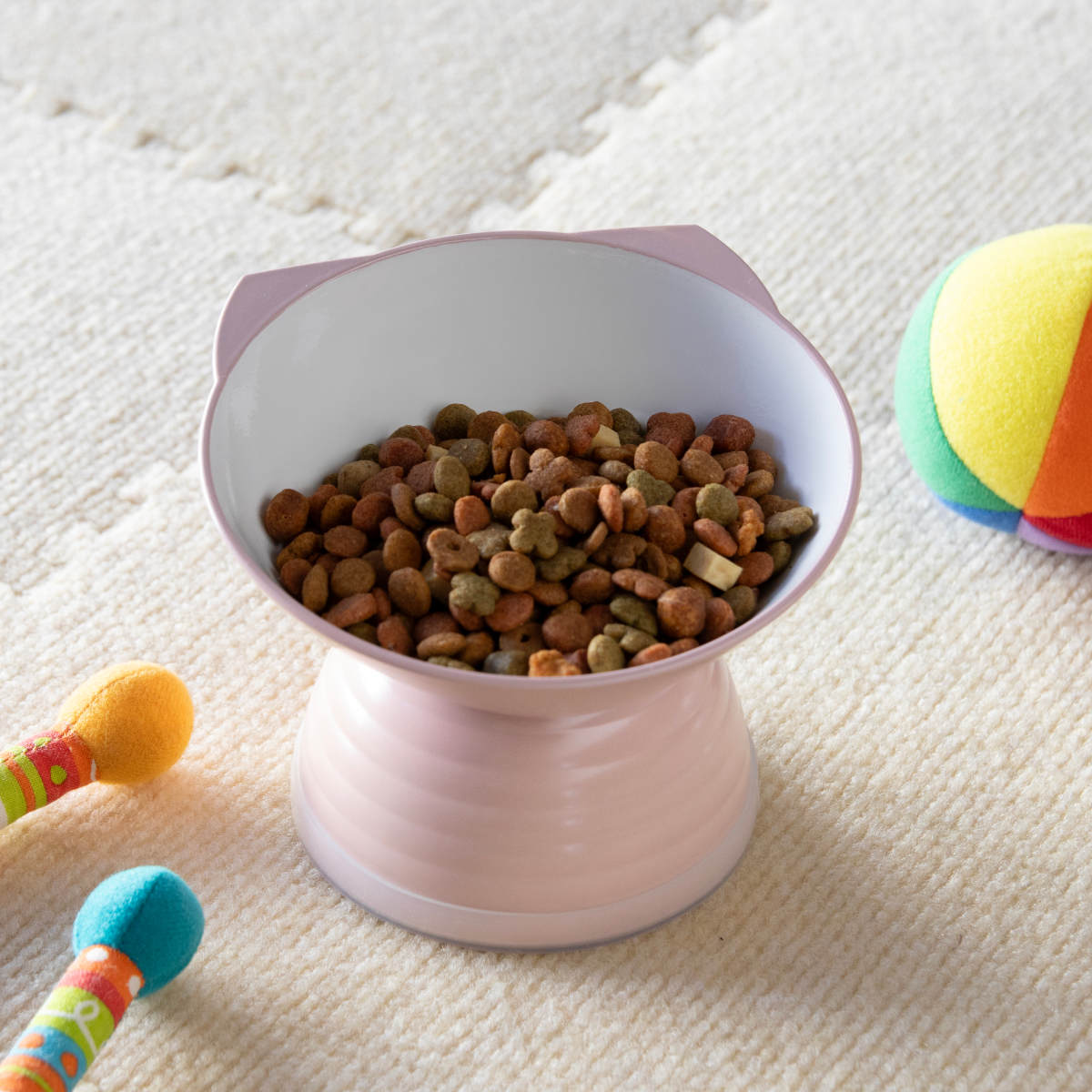 脚付きなので、首や背中を大きく曲げることなく食べられます。体への負担を和らげる姿勢で食事ができるため、シニアや、病中・病後のペットにも適しています。ペットの健康維持や食べ物の逆流予防に役立ちます。