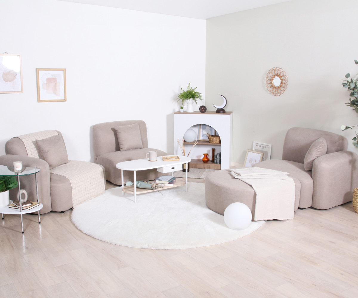 同じシリーズのひじ掛け付きソファなどを組み合わせて自分好みのスタイルにアレンジできます。