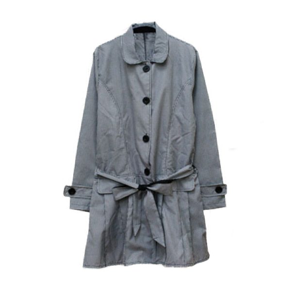 薄手のコートのようなデザインのレインコートです。ウエスト切り替えのプリーツと、裾のレースがポイント。カジュアルスタイルにはもちろん、スーツや制服などのフォーマルスタイルにも合わせやすい大人カジュアルなデザインです。
