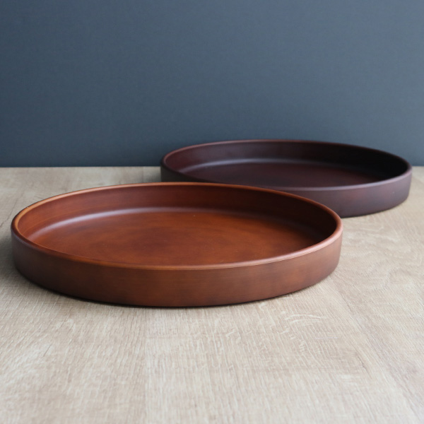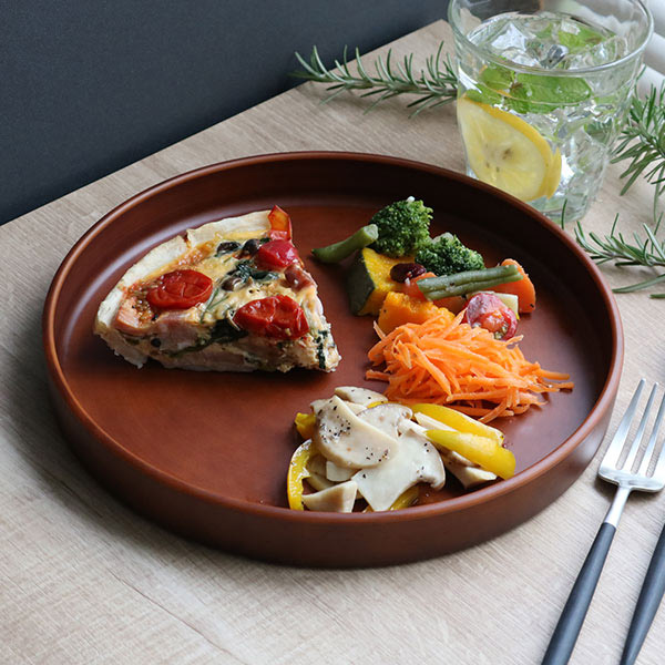 軽くて割れにくい木製風のディッシュプレートです。ワンプレートに盛り付けて、お洒落なカフェ風ランチが楽しめます。高さもあるので、ソースなどもこぼれず安心です。表面は熱や汚れに強いウレタン塗装でお手入れも簡単です。