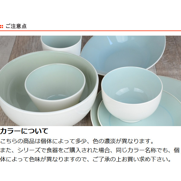 また、シリーズで食器をご購入された場合、同じカラー名称でも、個体によって色味が異なりますので、ご了承の上お買い求め下さい。