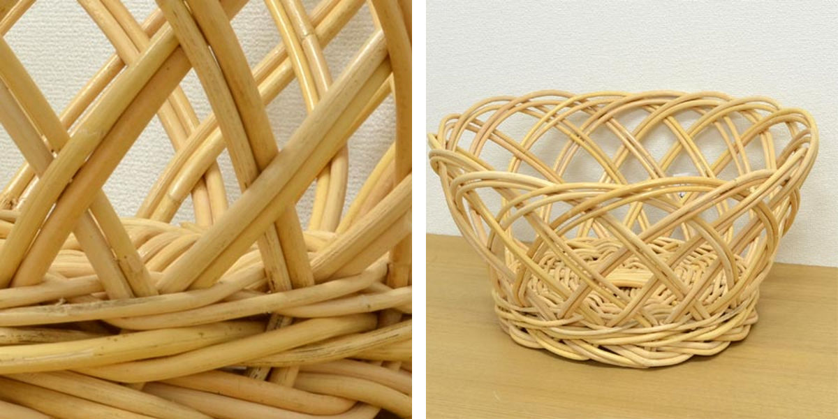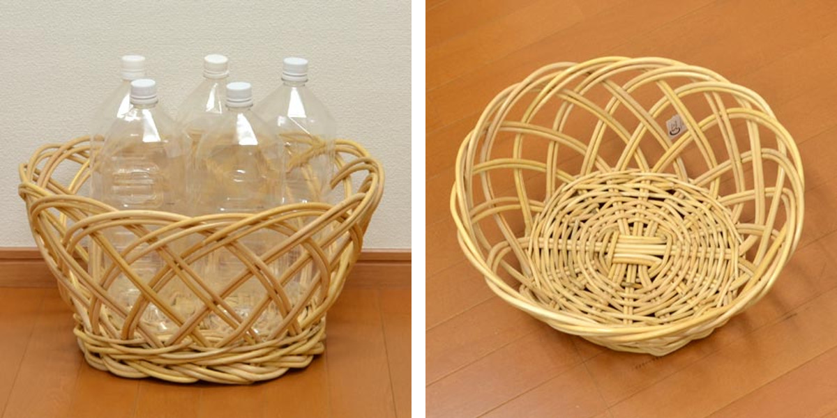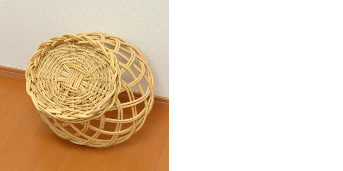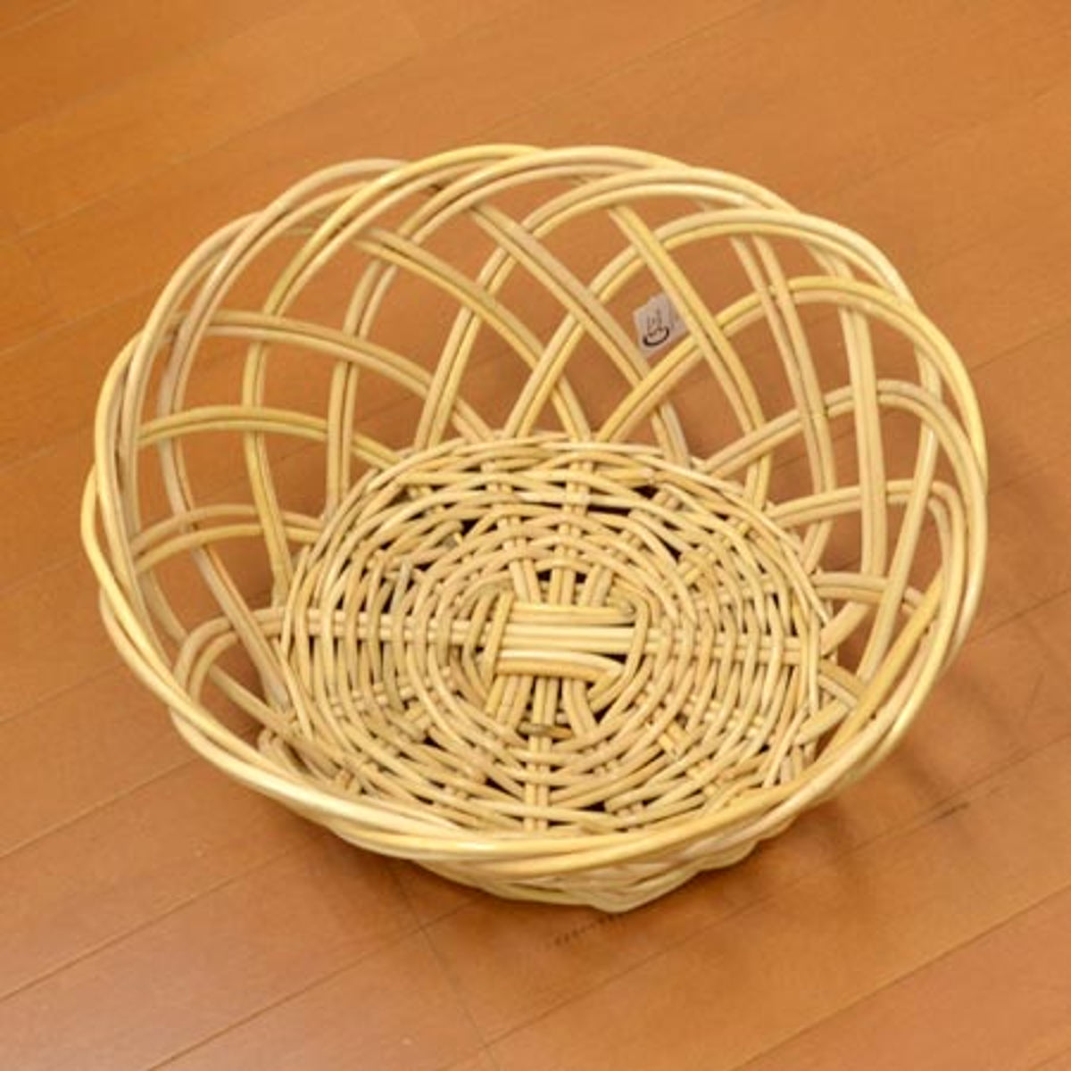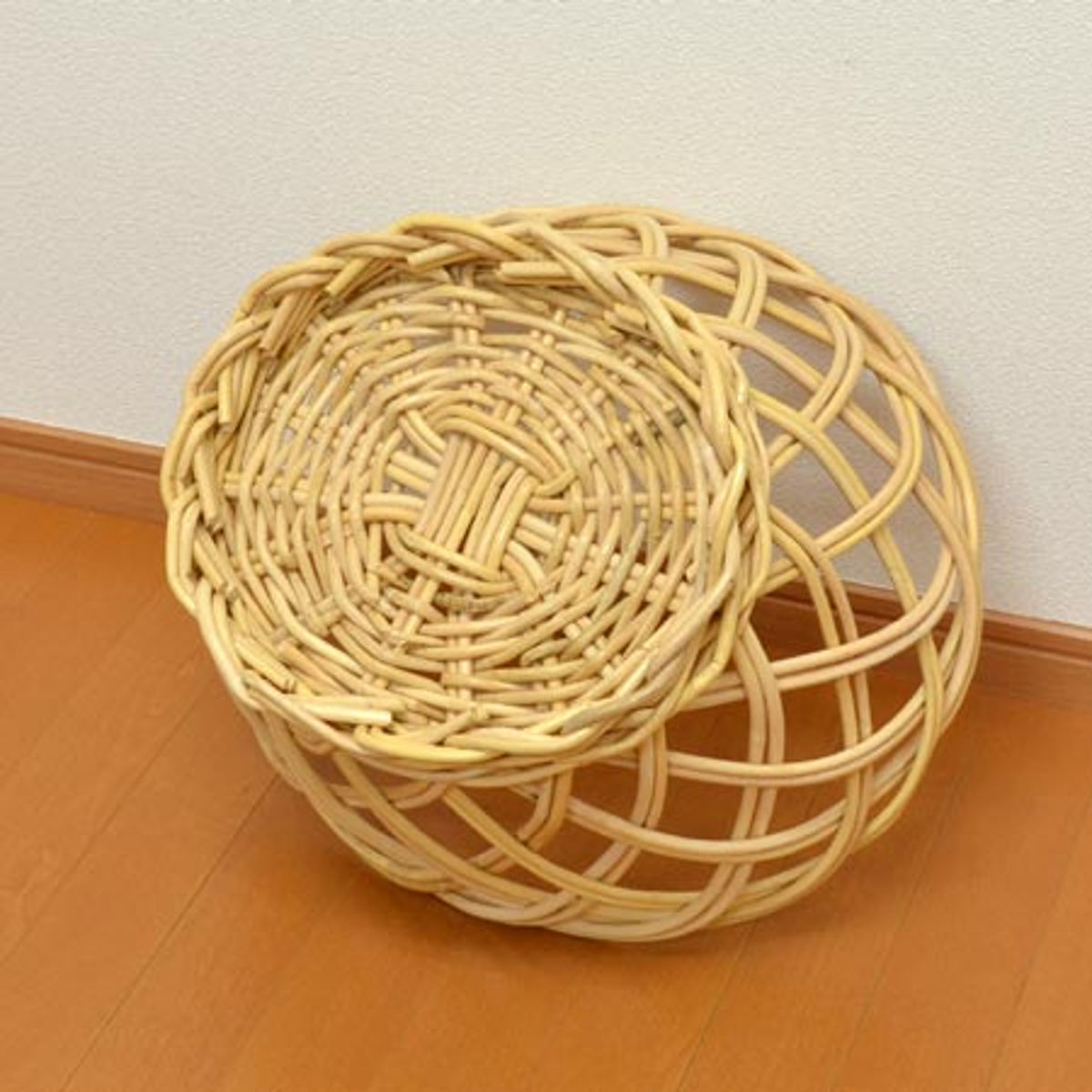| 通気性のよい天然素材 籐を編んでいます。 | おしゃれな丸型 |