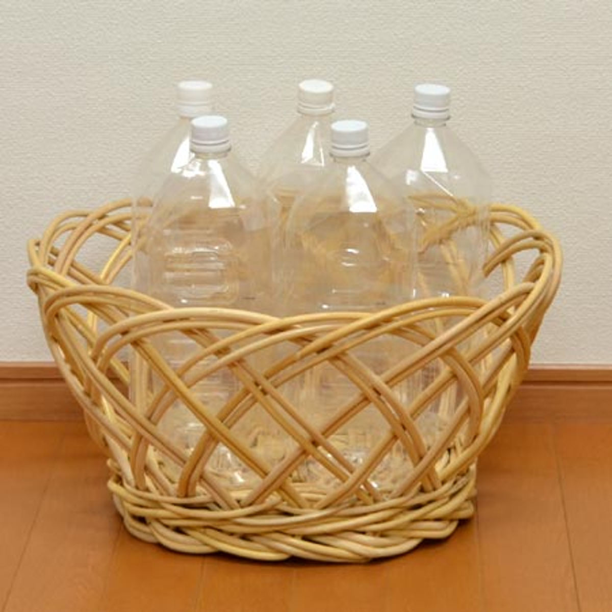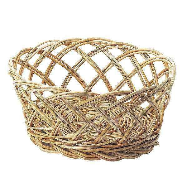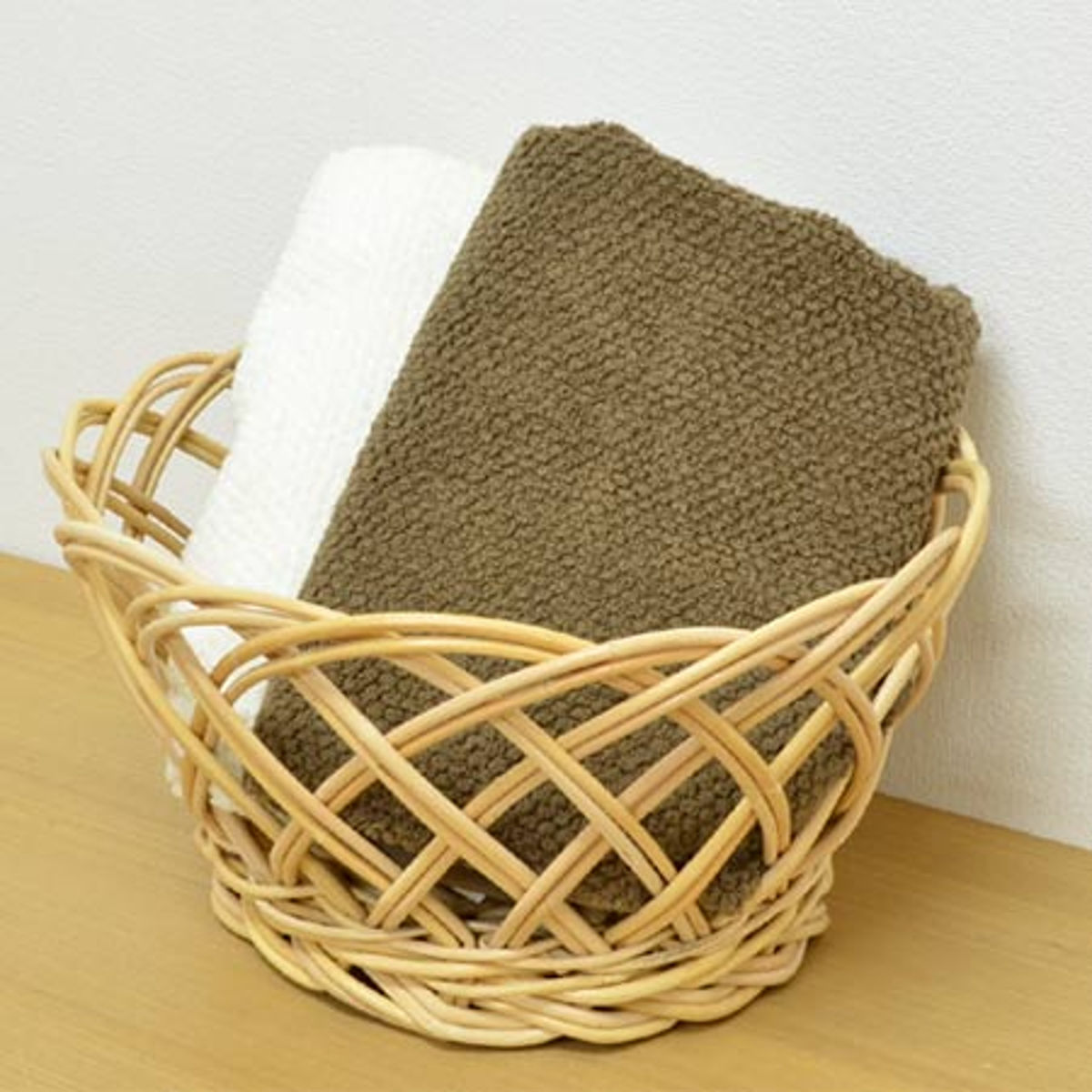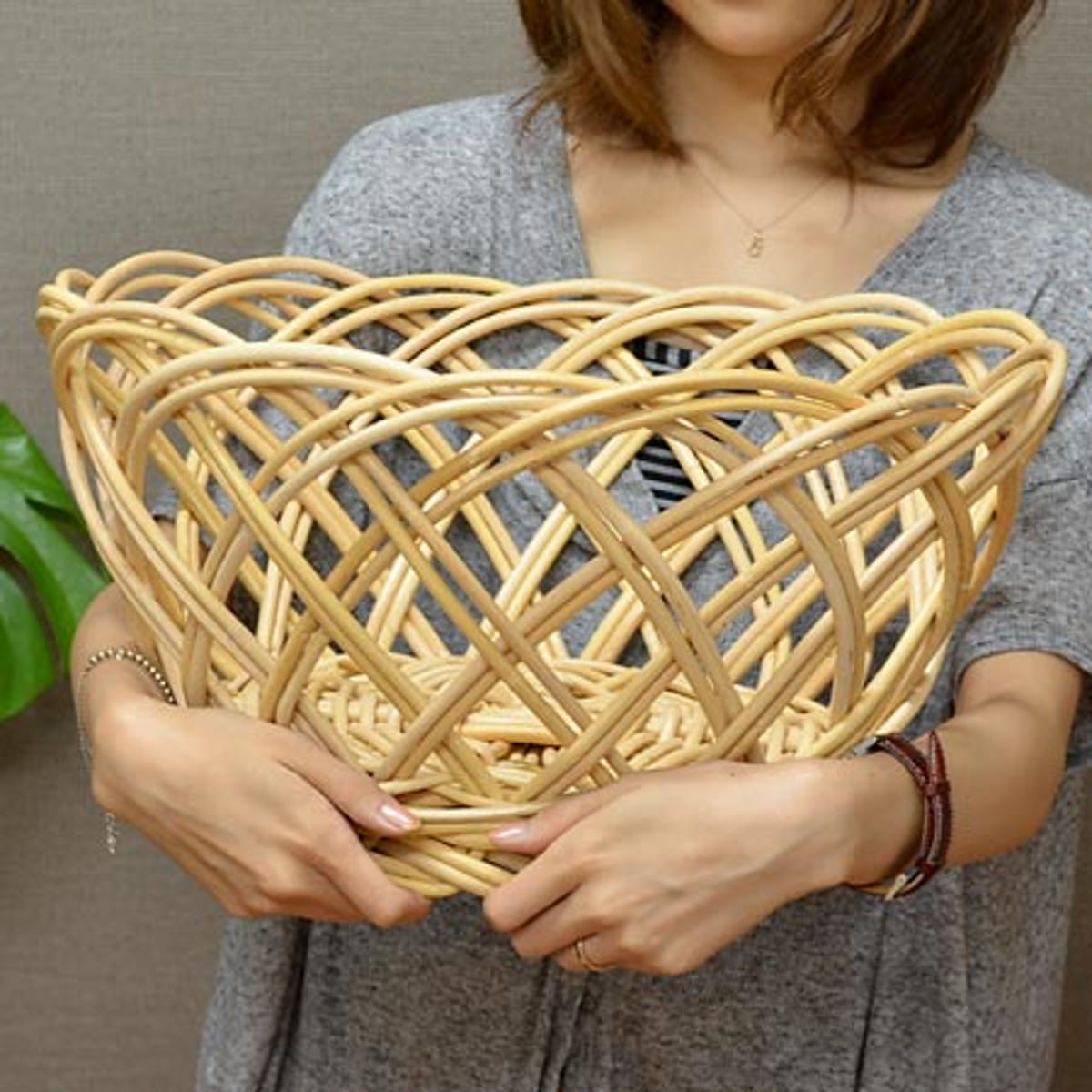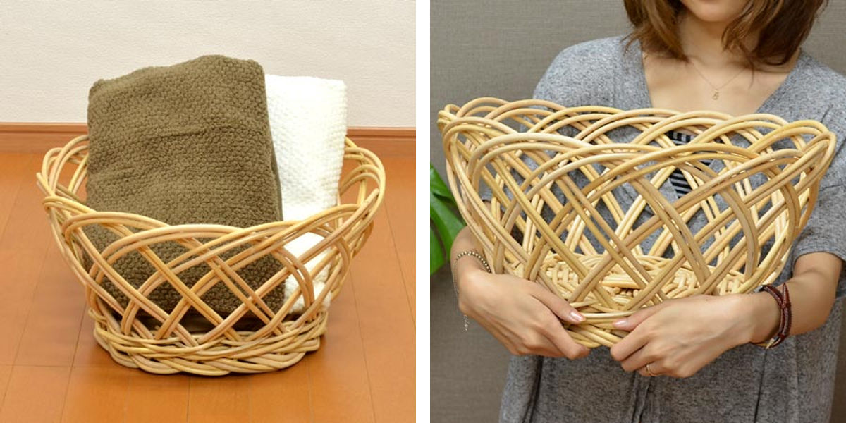 | 通気性のよい天然素材 籐を編んでいます。 | おしゃれな丸型 |