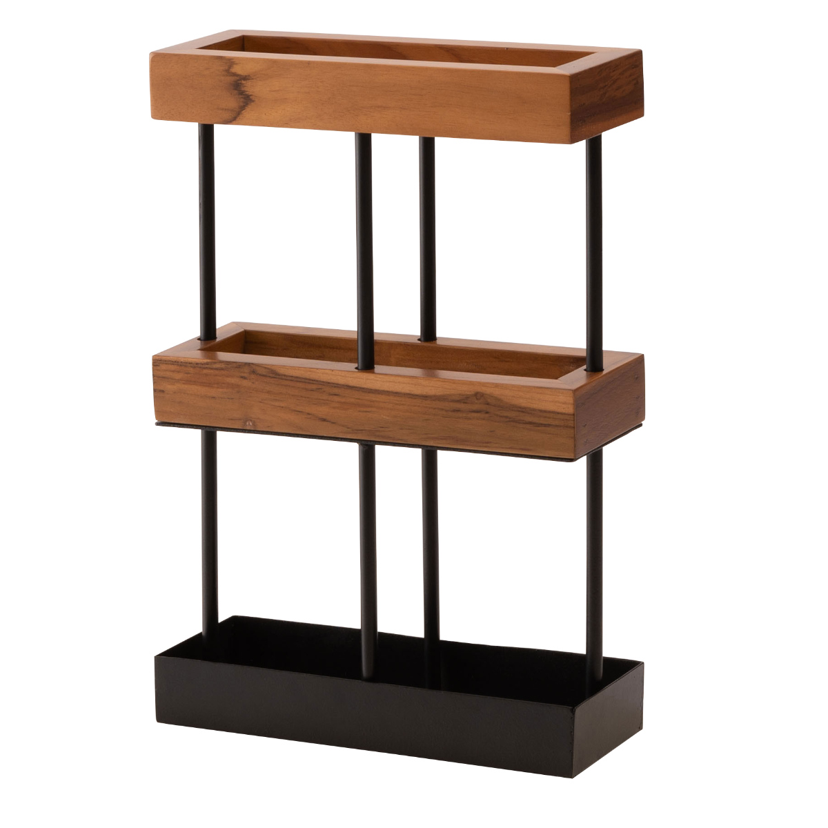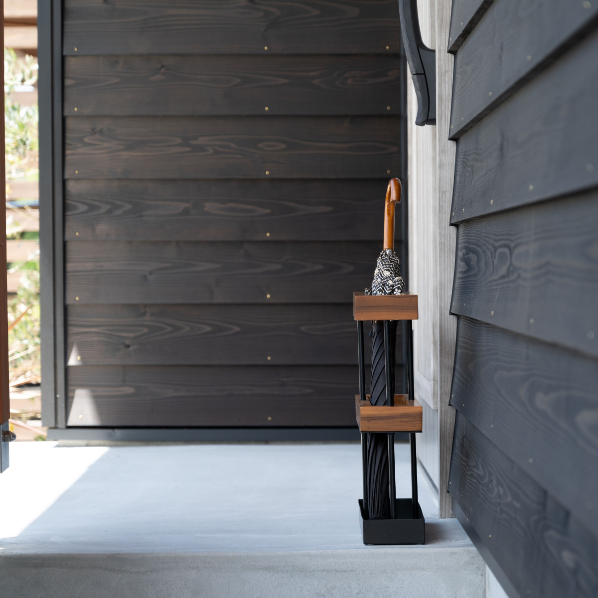 温かみのあるチーク材とスタイリッシュなアイアンを組み合わせたアンブレラスタンドです。インテリアとしても映えるデザインと、場所を取らずにしっかり収納できるカタチがポイントです。