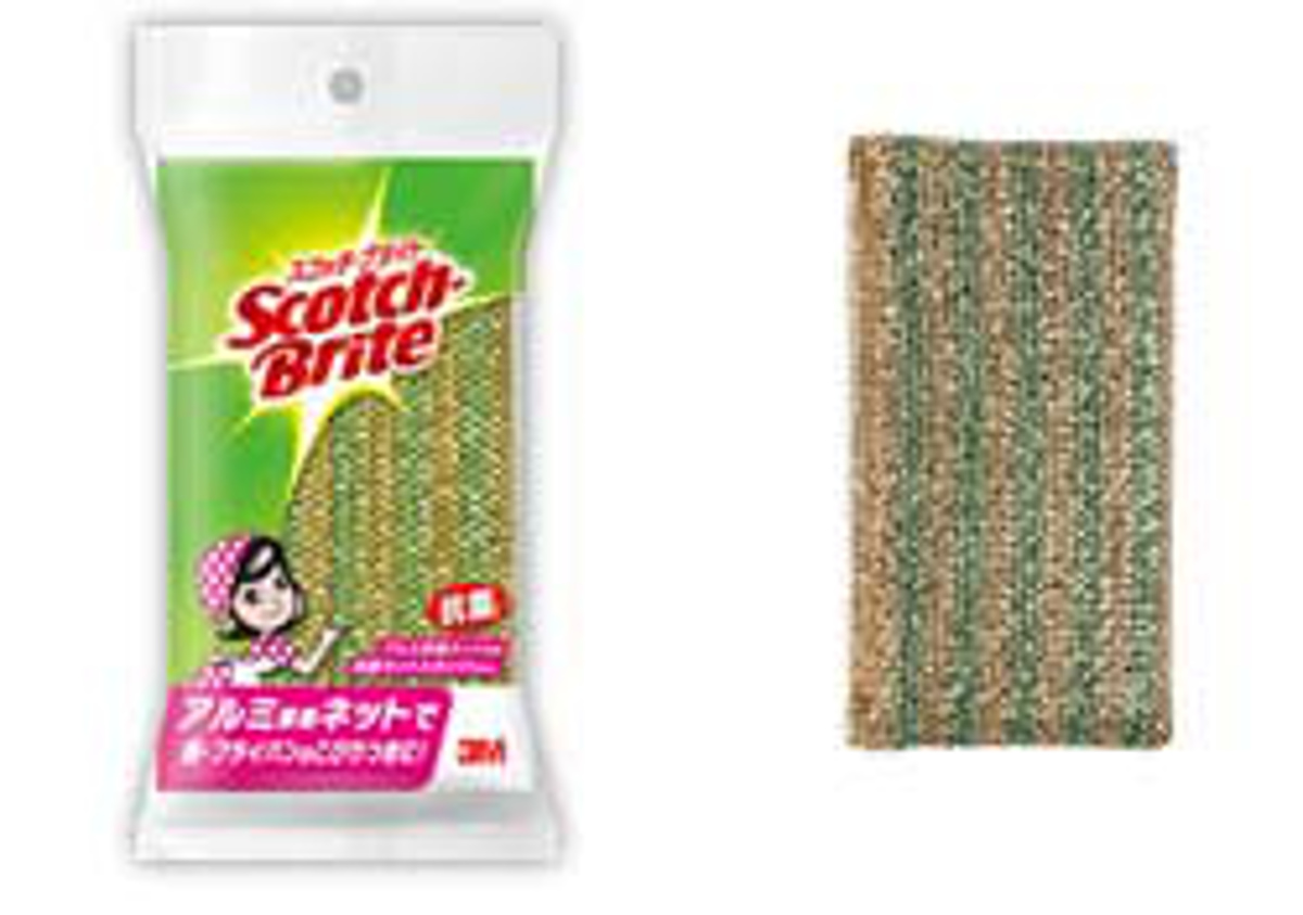 抗菌ウレタンスポンジをアルミ蒸着ネットで包んだたわしです。鍋やフライパンのこびりつきをすっきり落とします。研磨粒子がないのでグラス・ホーロー・フッ素加工にも、キズをつけずにスッキリとこびりつき汚れを落とします。