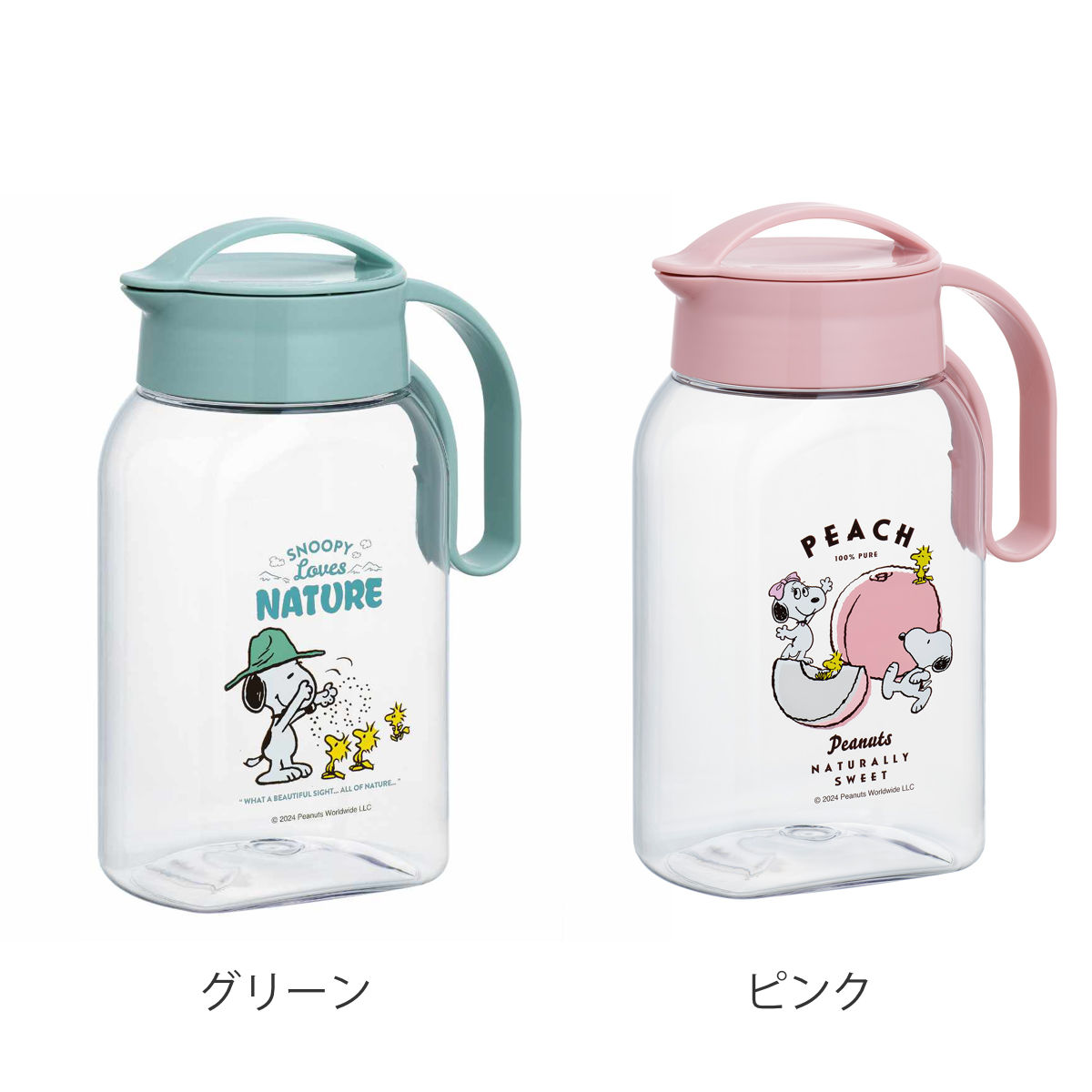 冷水筒 ピッチャー 1.8L 横置き 縦置き スヌーピー PEANUTS K-1282 プラスチック ( 麦茶ポット 水差し 冷水ポット 日本製 キャラクター キャラ プラスチック製 縦 横 麦茶 水 お茶 取っ手付き 軽い 割れにくい 国産 おしゃれ ) 【ピンク】
