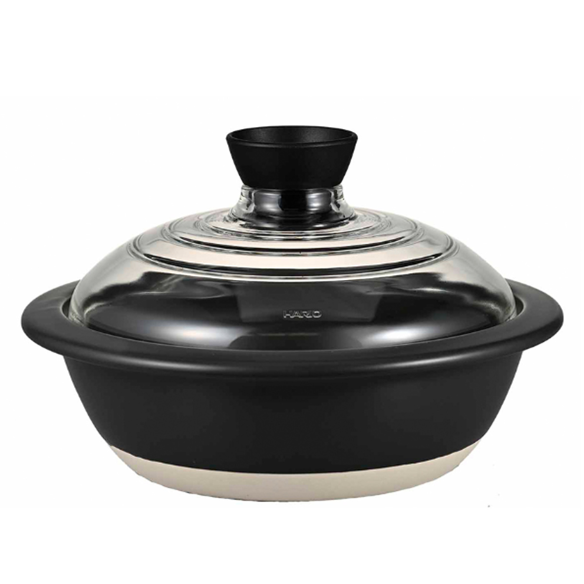 ハリオ フタがガラスの土鍋 8号 ガス火専用 ガラス蓋付き 電子レンジ対応 日本製 ( HARIO ガス火対応 電子レンジ可 オーブン可 萬古焼 ガラス蓋 3人用 4人用 直火土鍋 両手鍋 卓上鍋 季節鍋 )