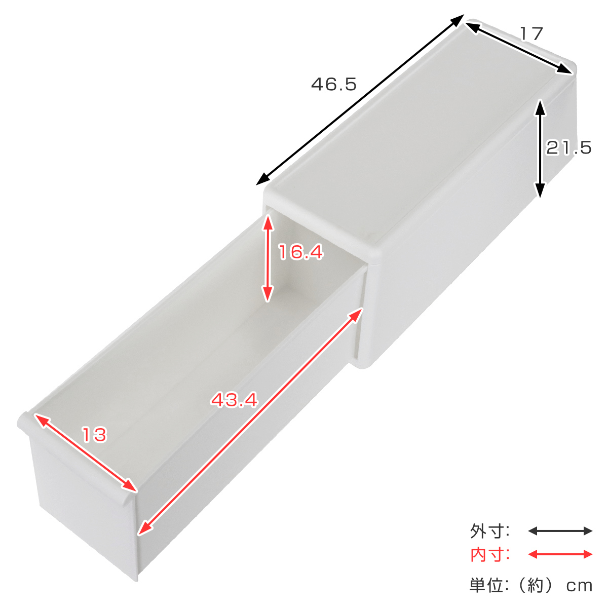 | サイズ | 約 幅17×奥行46.5×高さ21.5(cm) 引出し内寸:約 幅13×奥行43.4×高さ16.4(cm) |