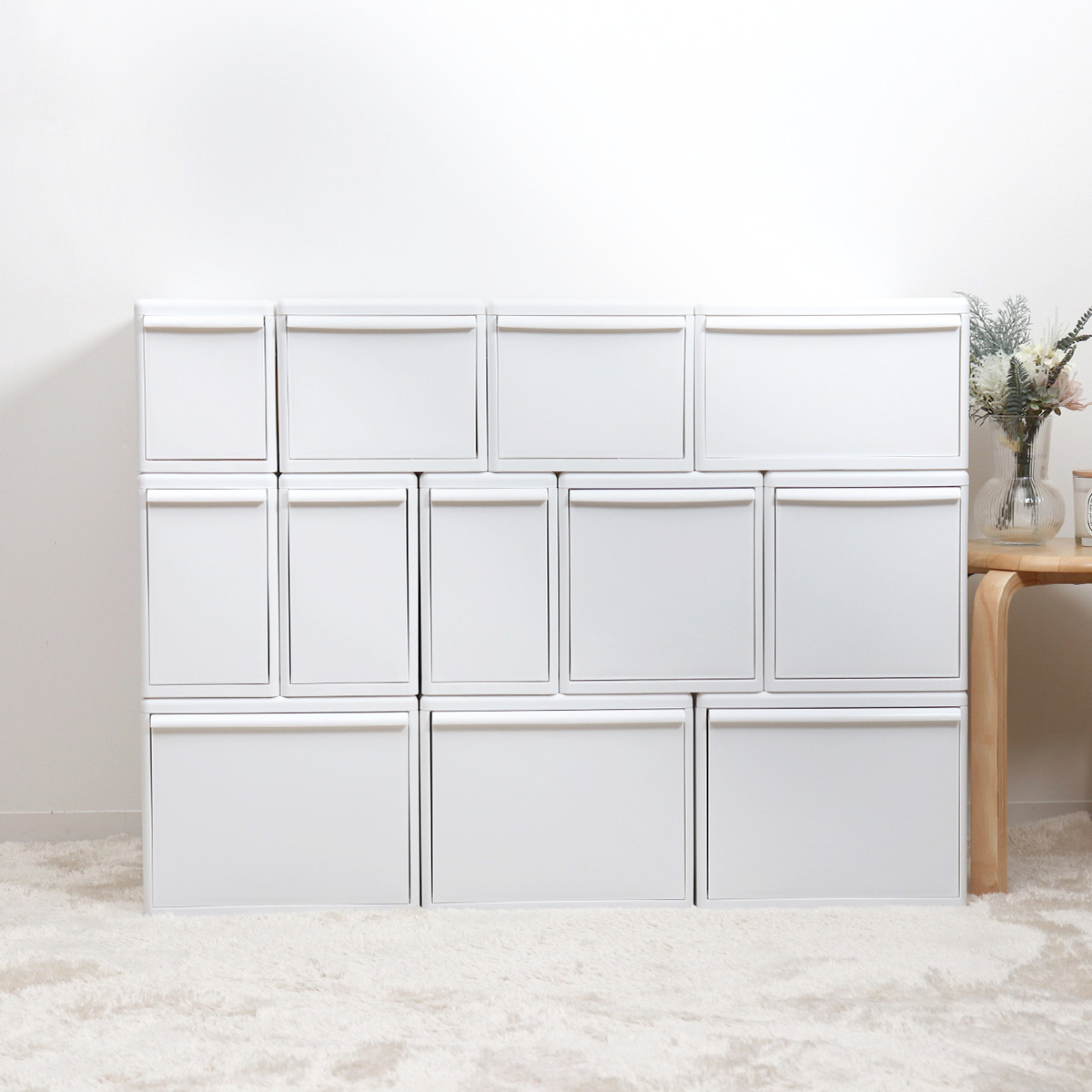 3種類の幅の異なる収納ケースでも積み重ねができるスタッキング構造で、自由にカスタマイズができます。無駄な空間を作らないブロック式構造なので、スッキリとした見た目です。MOSの収納ケースなら、スペースを有効活用したあなただけの「理想の収納」が作れます。