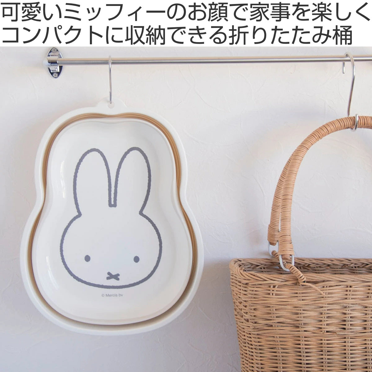 バケツ 洗い桶 折りたたみ miffy ミッフィー 折り畳み桶 ( 桶 折りたたみバケツ ソフトタブ キッチン雑貨 洗濯用品 省スペース たためる キッチン 食器洗い 洗い物 洗濯物 つけ置き 小さめ 持ち運び かわいい 皿 靴 フック )