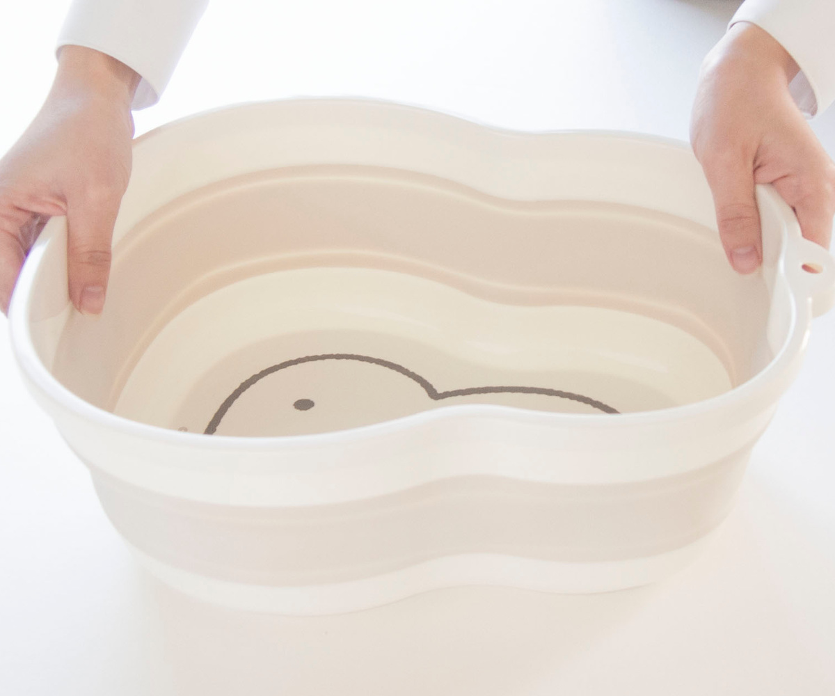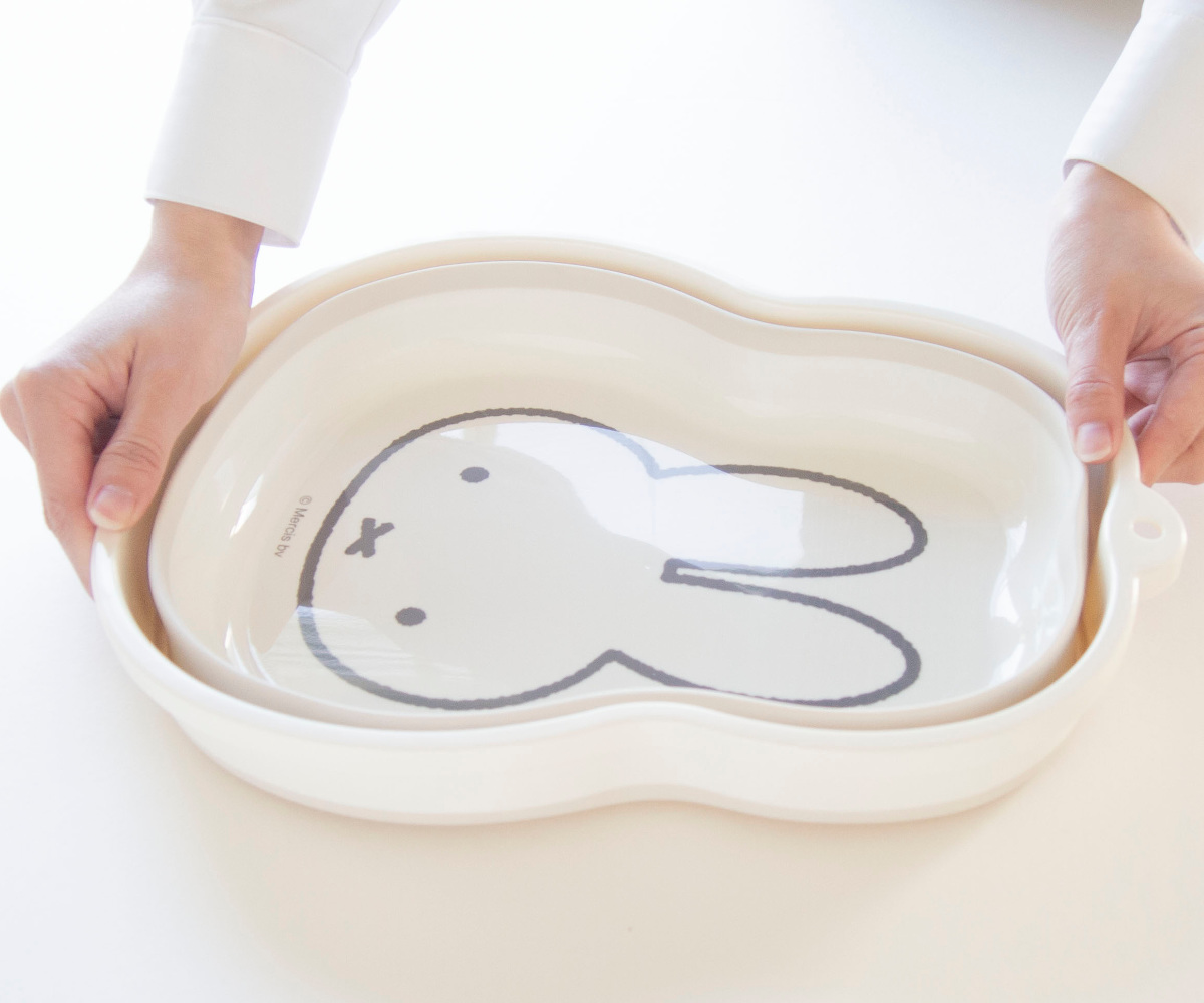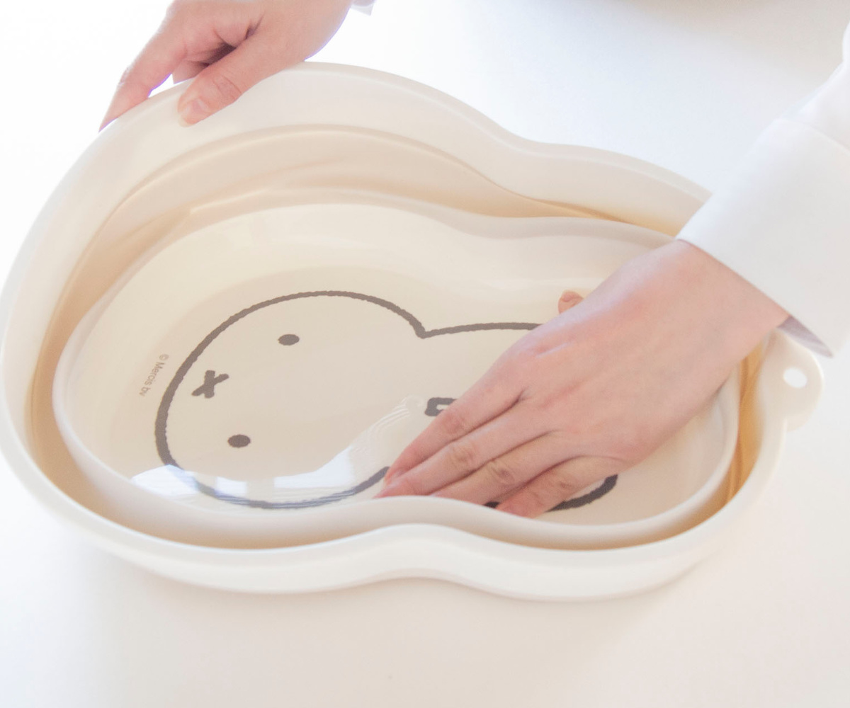 ミッフィーのお顔の形にダイカットされた折りたたみ桶です。少量の食器やふきんなどの手洗いにピッタリ。シンクにすっぽり収まるコンパクトなサイズ感なので、使用時も収納時も場所を取らず省スペースで使うことができます。可愛いミッフィーの絵柄で面倒な洗い物も楽しくなりそうです。