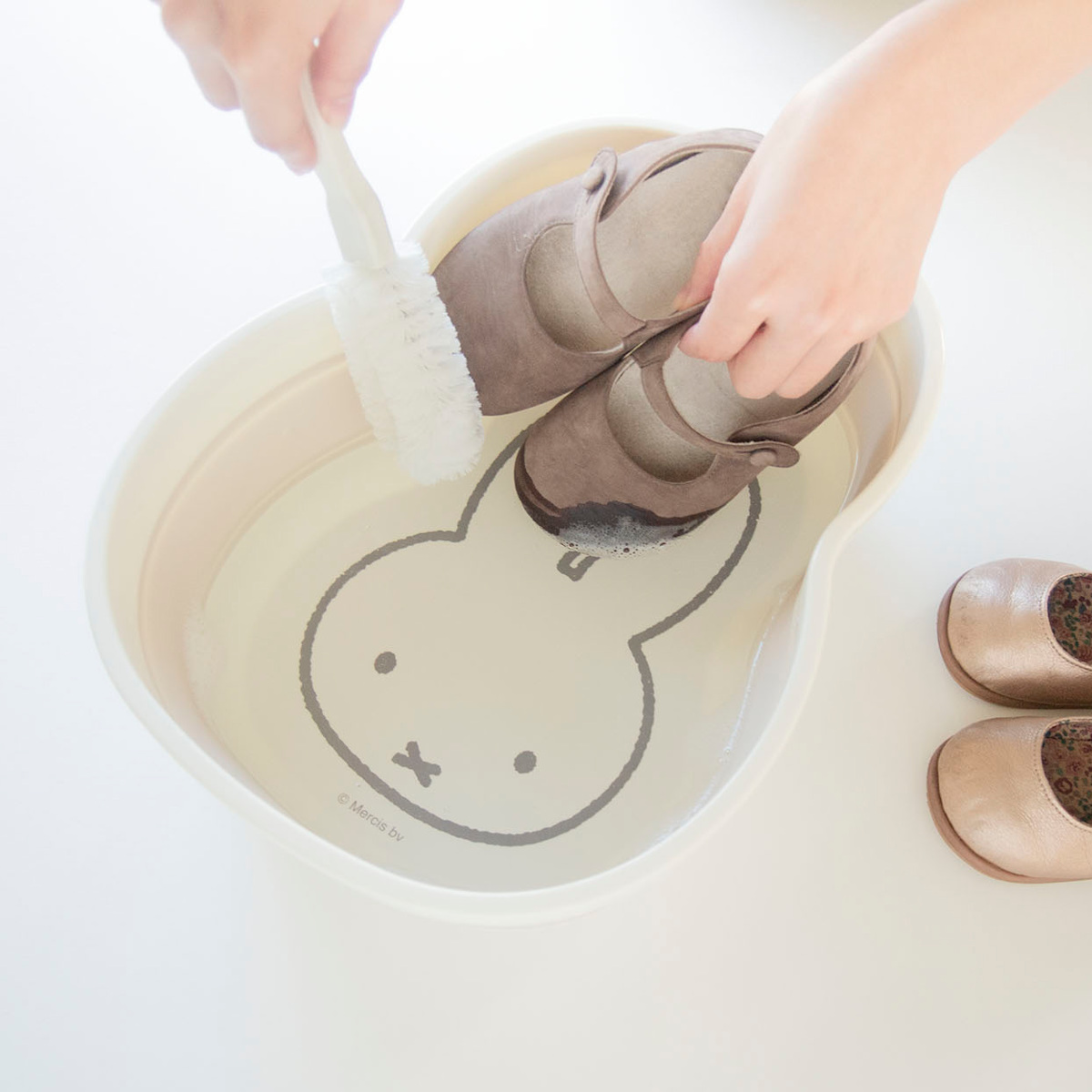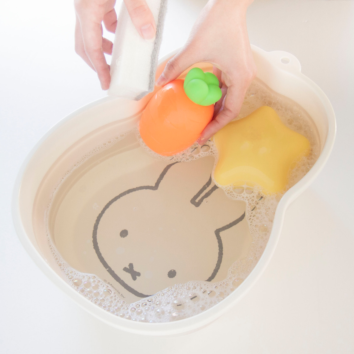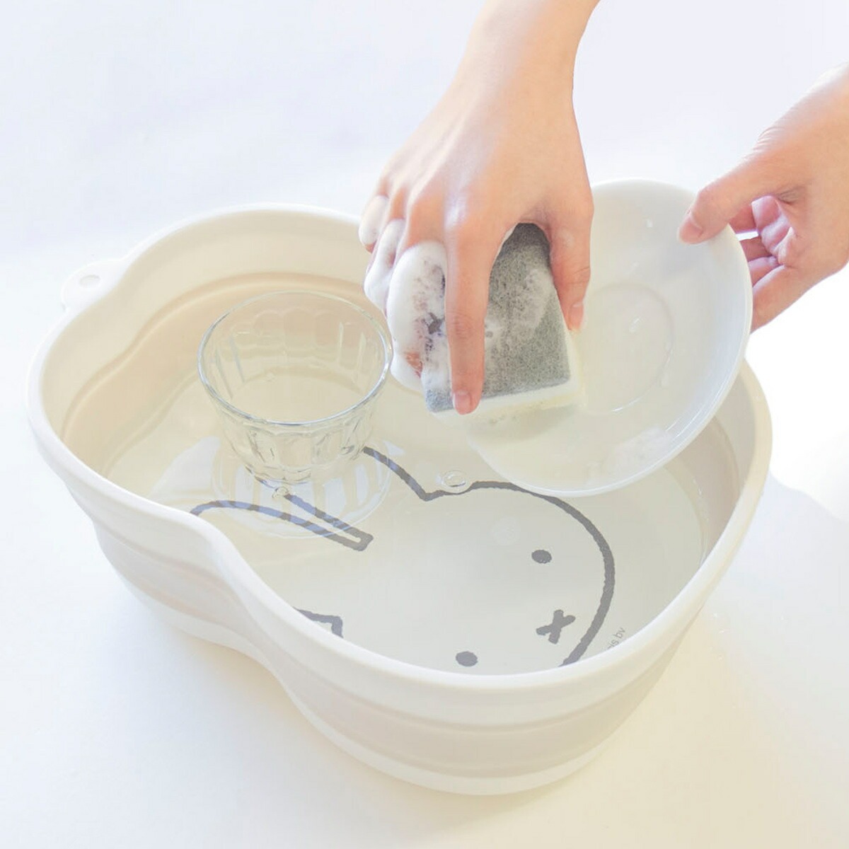 ミッフィーのお顔の形にダイカットされた折りたたみ桶です。少量の食器やふきんなどの手洗いにピッタリ。シンクにすっぽり収まるコンパクトなサイズ感なので、使用時も収納時も場所を取らず省スペースで使うことができます。可愛いミッフィーの絵柄で面倒な洗い物も楽しくなりそうです。