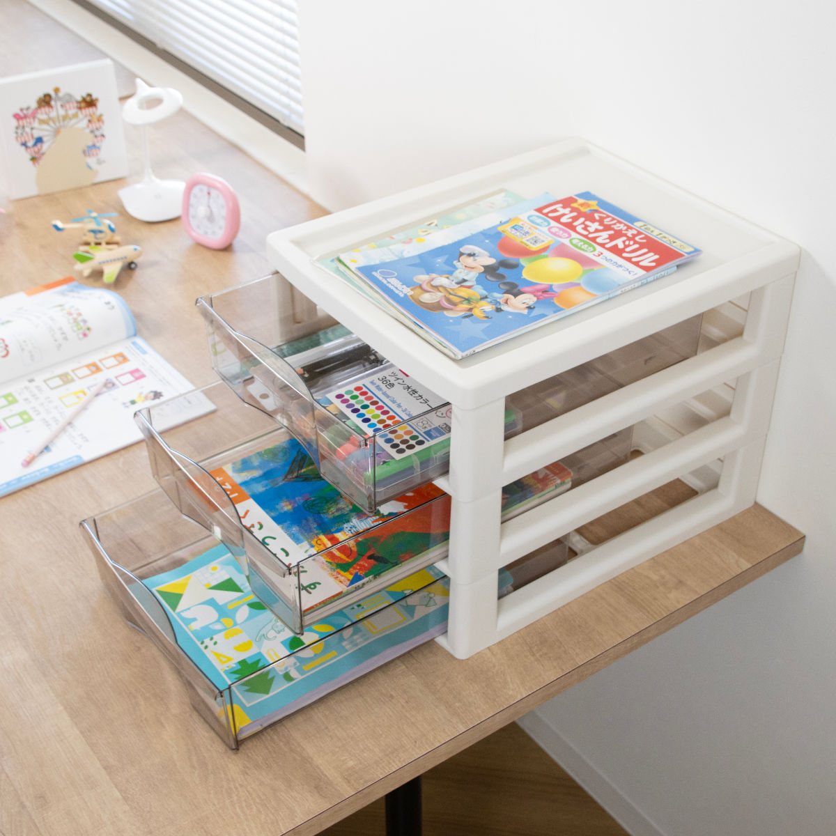 レターケースは、子供部屋の卓上整理にも最適です。散らかりがちな文房具、教材、プリント類などを分けて整理しておけます。片付ける場所をしっかり決めておくことで、自分自身で整理整頓しやすくなり、忘れ物やプリントの紛失などの防止にもなります。