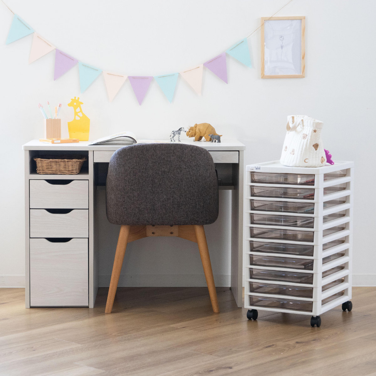 レターケースは多段引出し収納なので、分類収納が可能です。自分の使いやすいように分けて収納しておけるので、作業や仕事の効率もアップします。ご家庭内なら、取扱い説明書や保険書類、お子さまの学校のプリントなどを分けて、入れおく収納場所として便利にお使いいただけます。