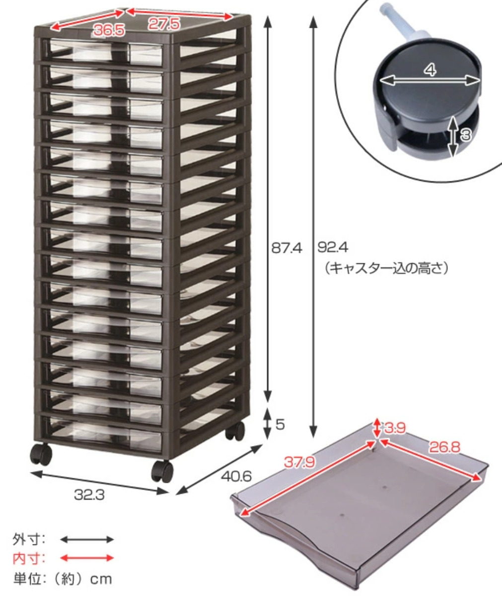 | 材質 | 本体:ポリプロピレン 引出し:ポリスチレン |