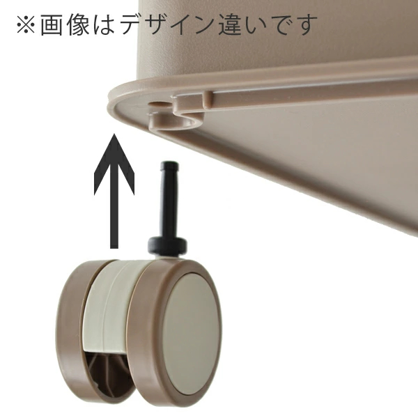 対応する収納ケースの底面にあるキャスター差し込み用の穴に、キャスターをカチンと音がするまで差し込むだけで、簡単に取り付けができます。キャスターを取り付けると、収納ケースがの高さが約5.5cm高くなります。