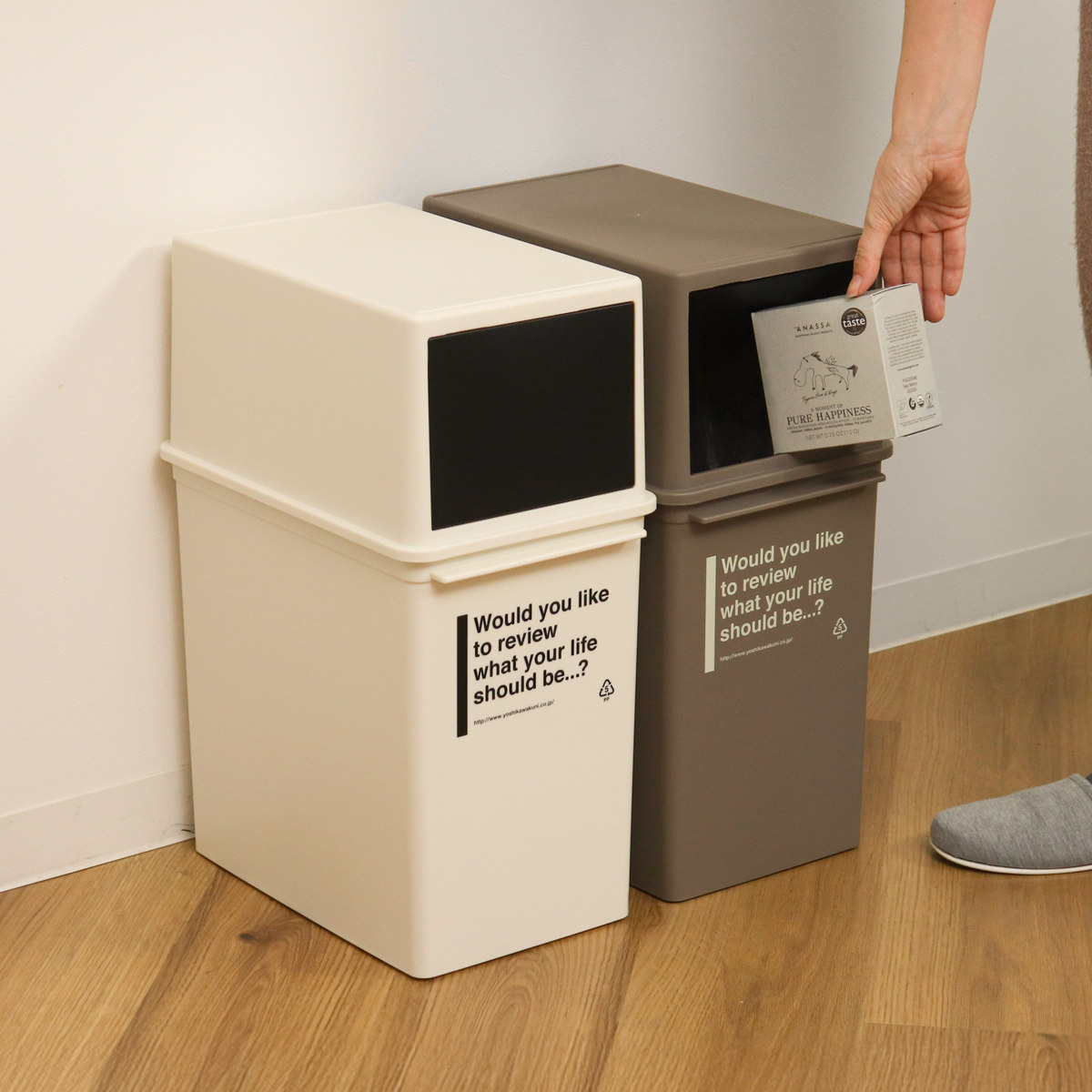 サイズ違いや、別売りの「プッシュ」タイプとも積み重ねられるので、ゴミの量や設置スペースに合わせてレイアウトできます。
