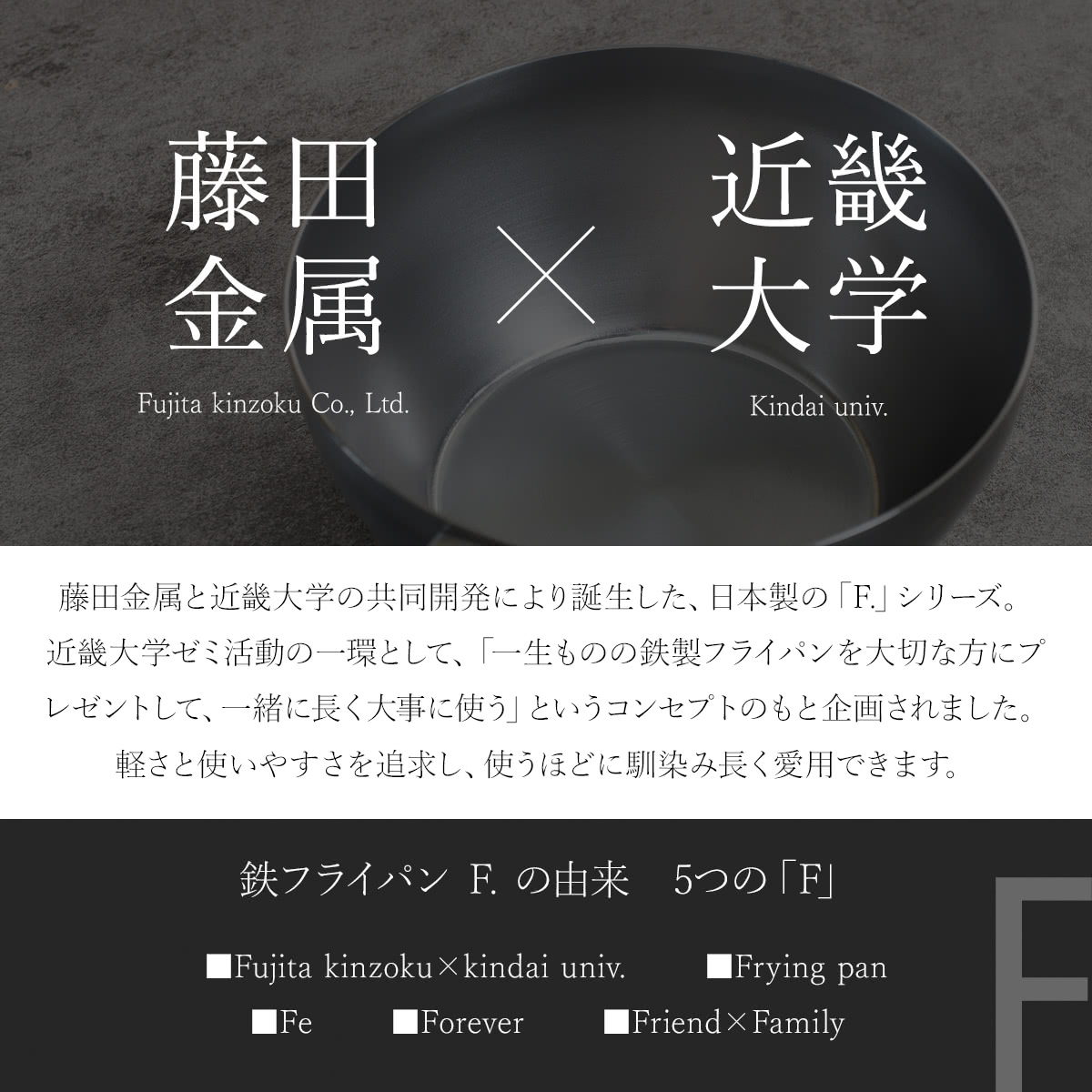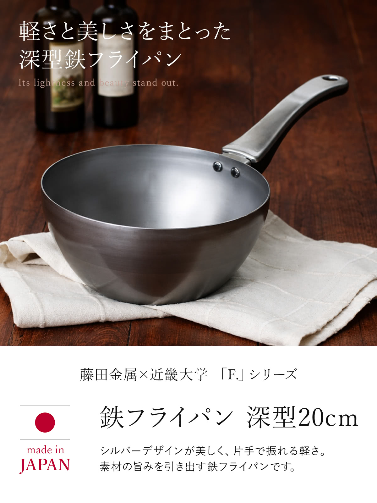 鉄フライパン 20cm 深型 IH対応 「F.」 藤田金属×近畿大学 日本製 ( ガス火対応 鉄製フライパン 片手鍋 炒め鍋 フライパン 20センチ 鉄のフライパン 鉄製 軽い 金属ヘラOK いため鍋 揚げ鍋 深型フライパン 調理器具 )
