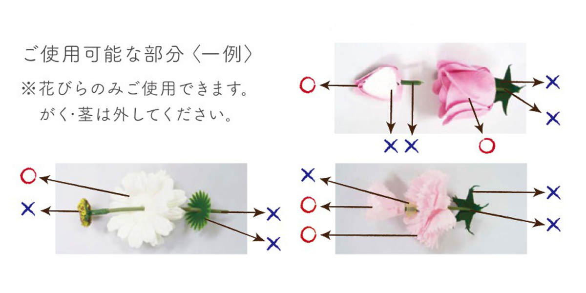 間近で見なければ石けんだとは分からない程リアルで繊細な作りになっています。より本物のお花に近づけるため、こだわりをもって作られています。