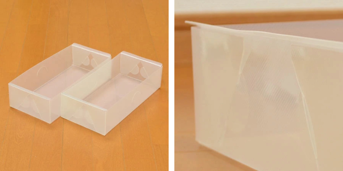| すっきり見えるクリアカラー 引出し内に複数個並べても、ごちゃつきません。 | 丈夫なポリプロピレン素材 |