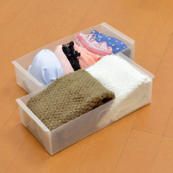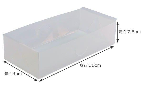 | 引出しに丁度いい奥行きと高さ 引出しのサイズをご確認の上、お買い求めください。 | ほかサイズと組み合わせて 下着やタオル類・衣類を、サイズにあった仕切りケースに収納。引出し内をすっきり整頓できます。 |