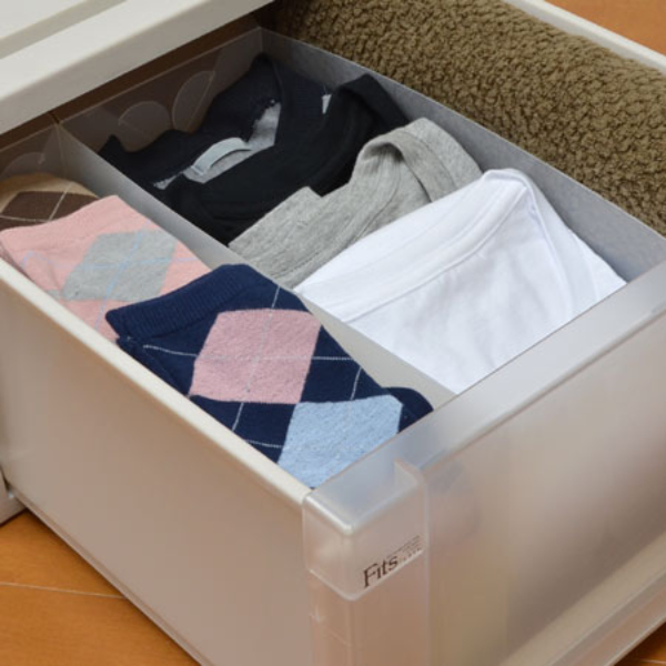 | 衣装ケースに丁度いい奥行きと高さ 衣装ケースのサイズをご確認の上、お買い求めください。 | ほかサイズと組み合わせて 下着やタオル類・衣類を、サイズにあった仕切りケースに収納。衣装ケース内をすっきり整頓できます。 |