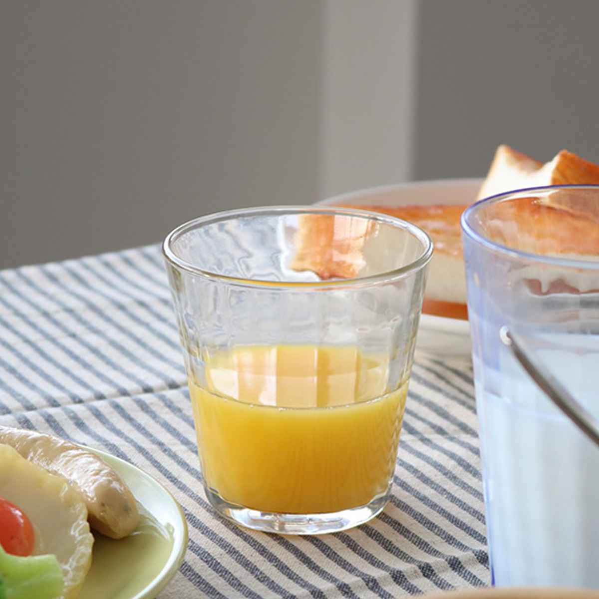 衝撃に強く、急激な温度変化にも耐えることができる全面強化ガラス製のグラスです。丈夫で扱いやすいので、家庭用としてだけではなく、飲食店などでも幅広く使われています。シンプルなデザインで来客用としてもおすすめです。小さめのサイズ感なので、お子様の飲み物や副菜の盛り付けにもちょうどいい大きさです。