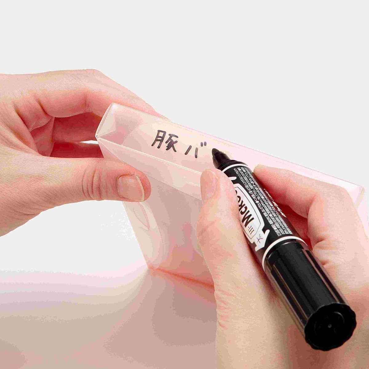 油性マジックで中身を書け、除光液で消して繰り返し使えます。