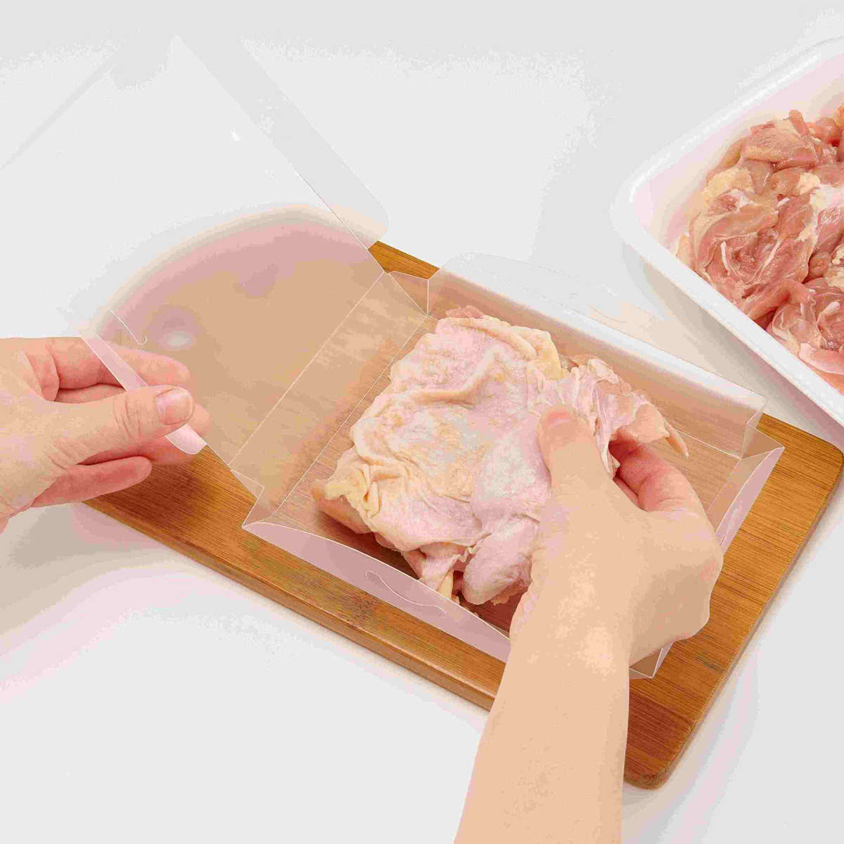 保存容器 まな板にもなる 小分け 冷凍パック ( 薄切り肉用 厚切り肉用 冷凍容器 小分けパック 肉 冷凍 トレー 繰り返し使える ラップ不要 日本製 まな板シート 薄切り肉 鶏肉 レンジ解凍OK 洗える 便利 丈夫 冷凍保存 まとめ買い ) 【薄切り肉用】