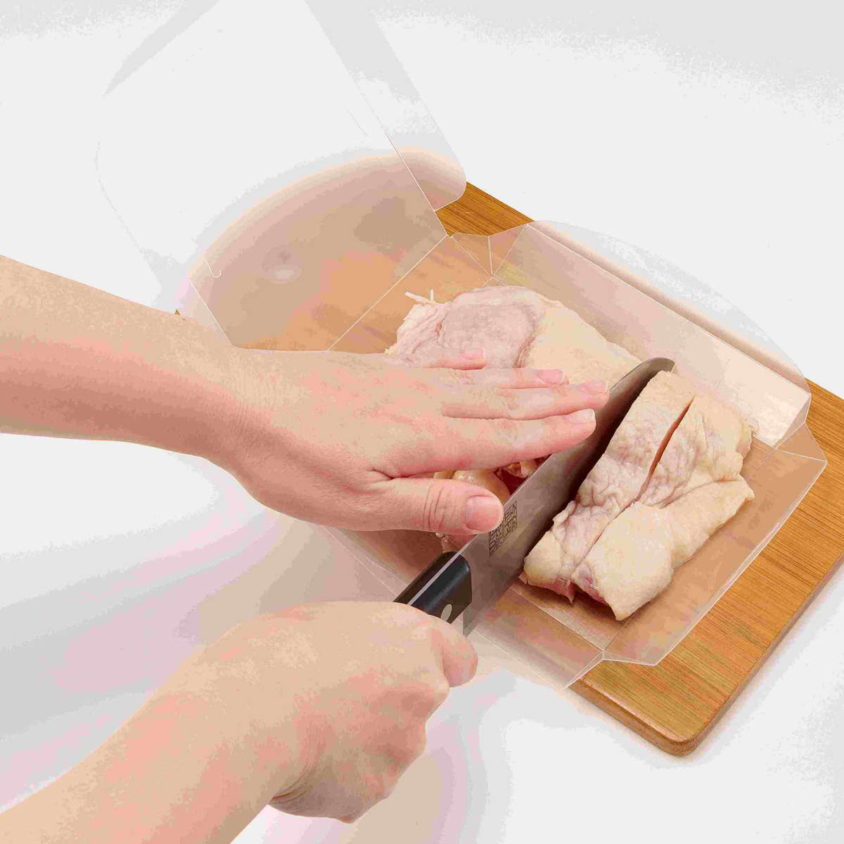 電子レンジの解凍モードで半解凍し、軽く戻してからパックを開けば、そのまま上で包丁でカットできます。