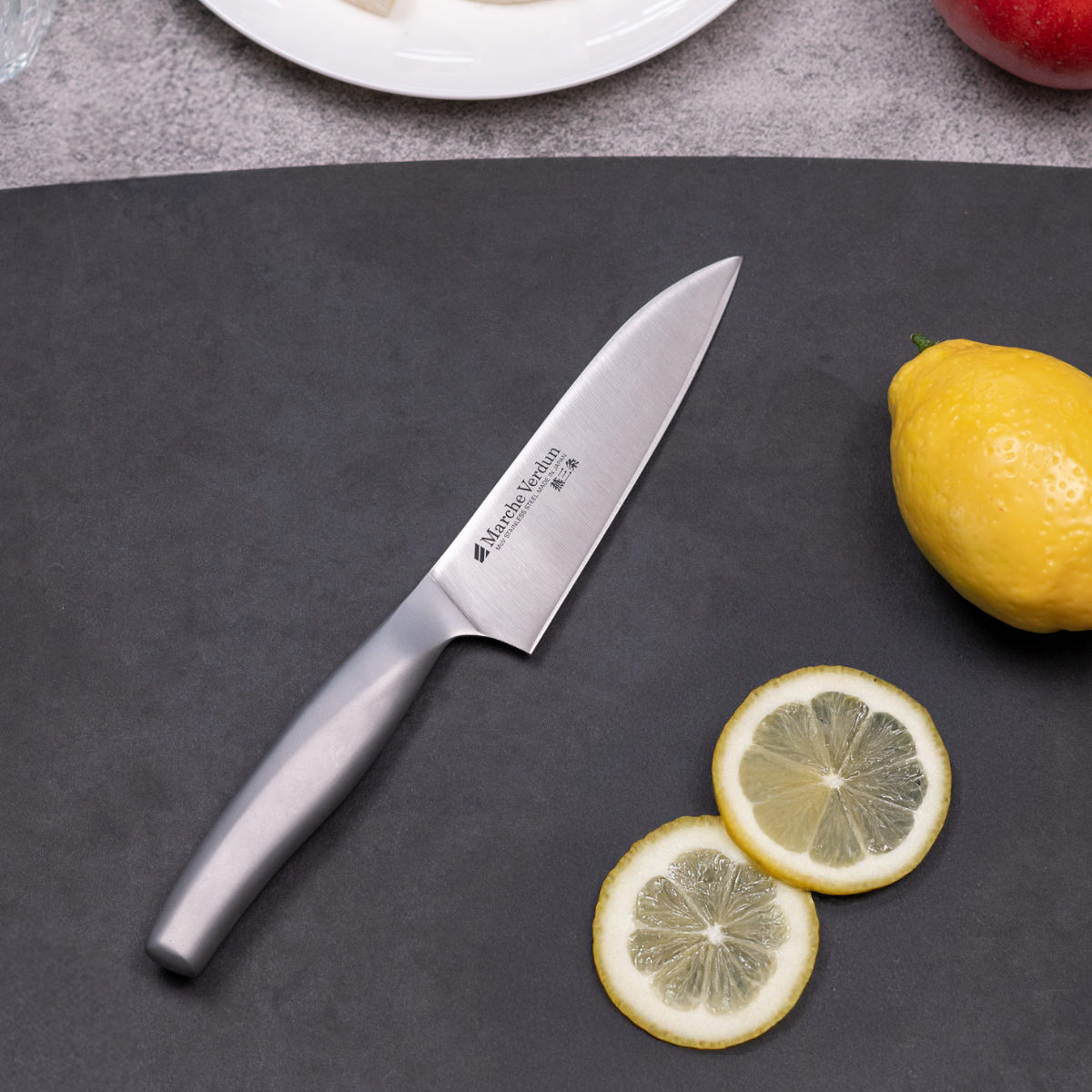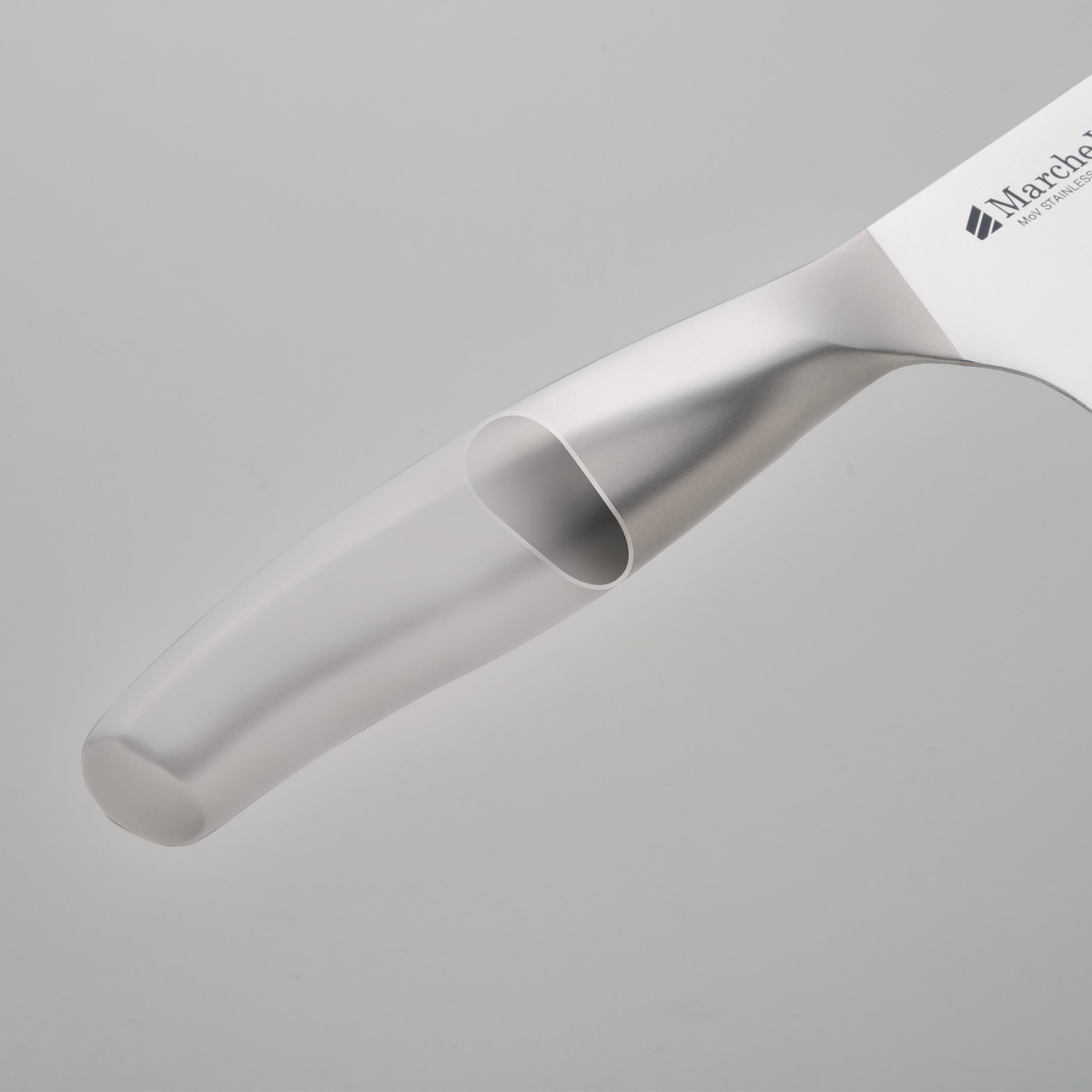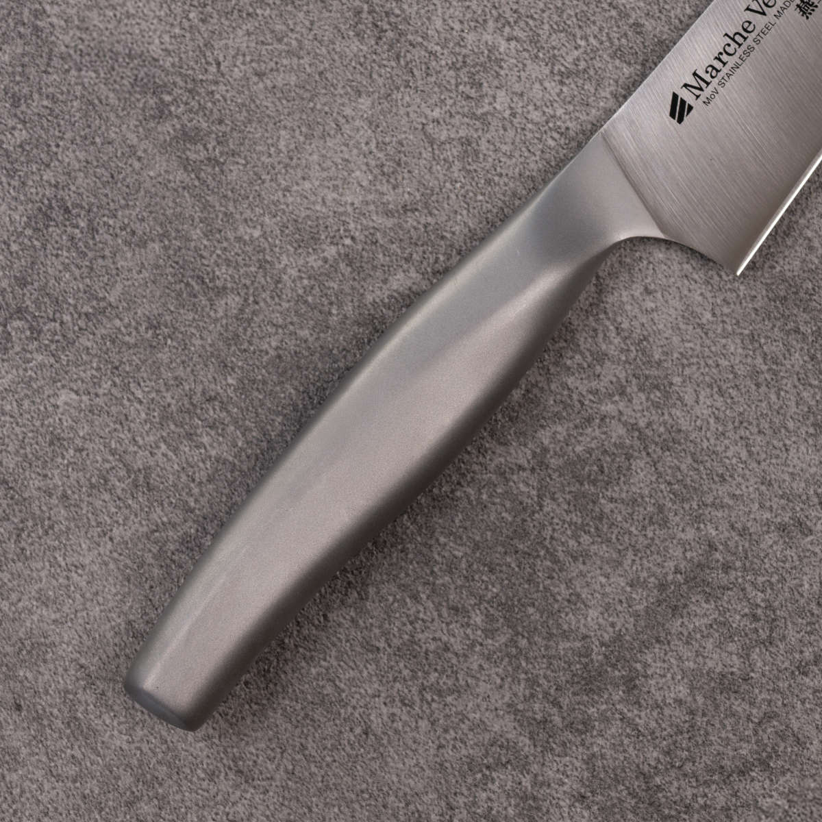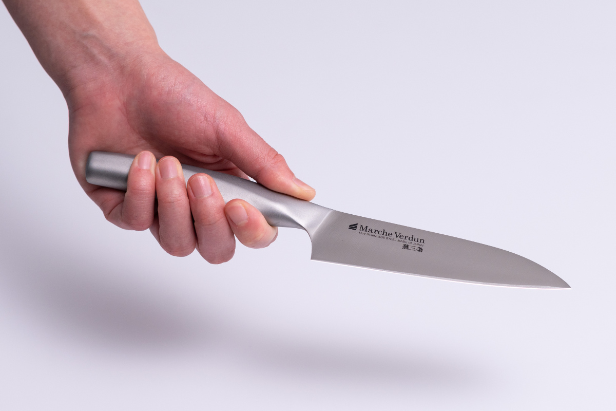 手研ぎ本刃付け、オールステンレス製のマルシェヴェルダンシリーズには、三徳包丁、ペティナイフ、パン切り包丁があります。シリーズで揃えてお使いいただくとキッチンに統一感がでます。