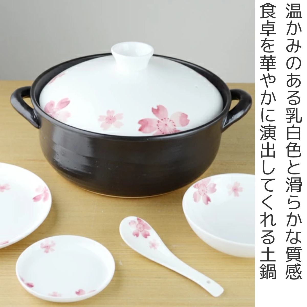土鍋 桜 6号 (1~2人用) 深型 IH対応 ボーンチャイナ ( 両手鍋 どなべ 深型鍋 おすすめ 1~2人用 ガス火対応 陶器製 )