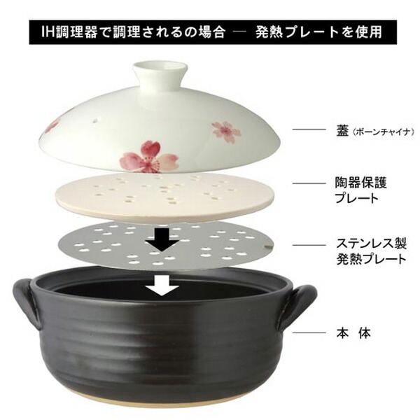 | 材質 | 本体:耐熱陶器 蓋:ボーンチャイナ 発熱プレート:ステンレス 陶器保護プレート:陶器 |