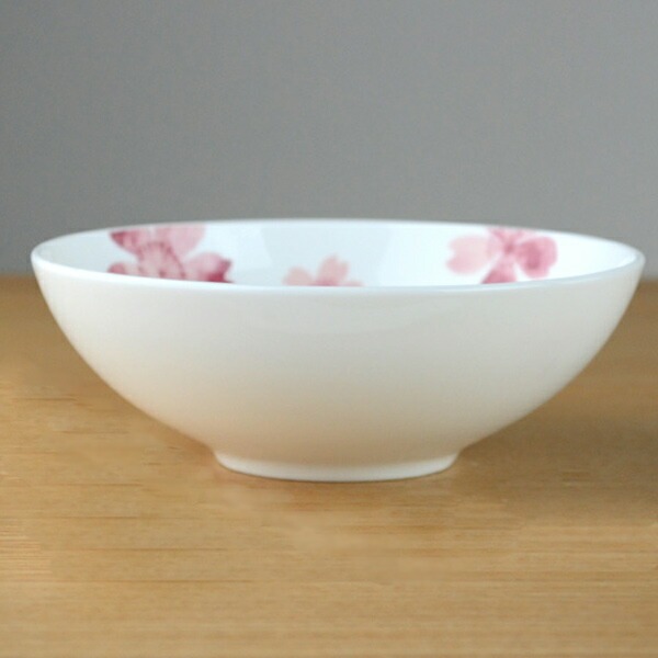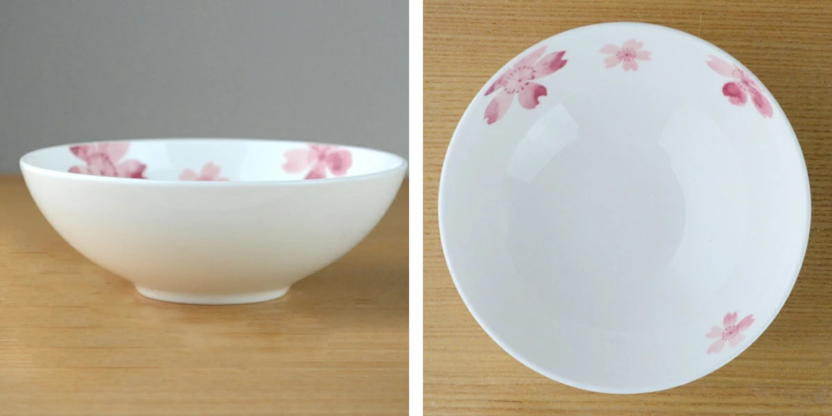 水彩調の淡い落ち着いたお色の桜のデザインは幅広い世代の方に好まれます。お料理が上にのっても、チラッと見えるピンクの桜が食材を彩ります。