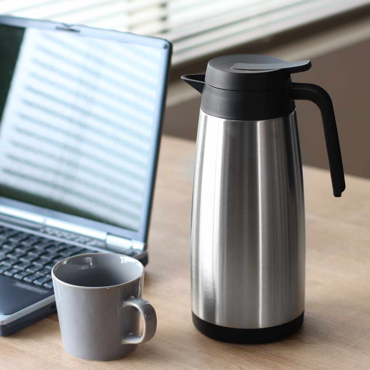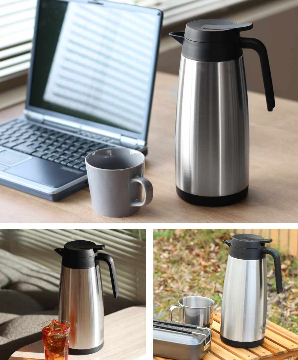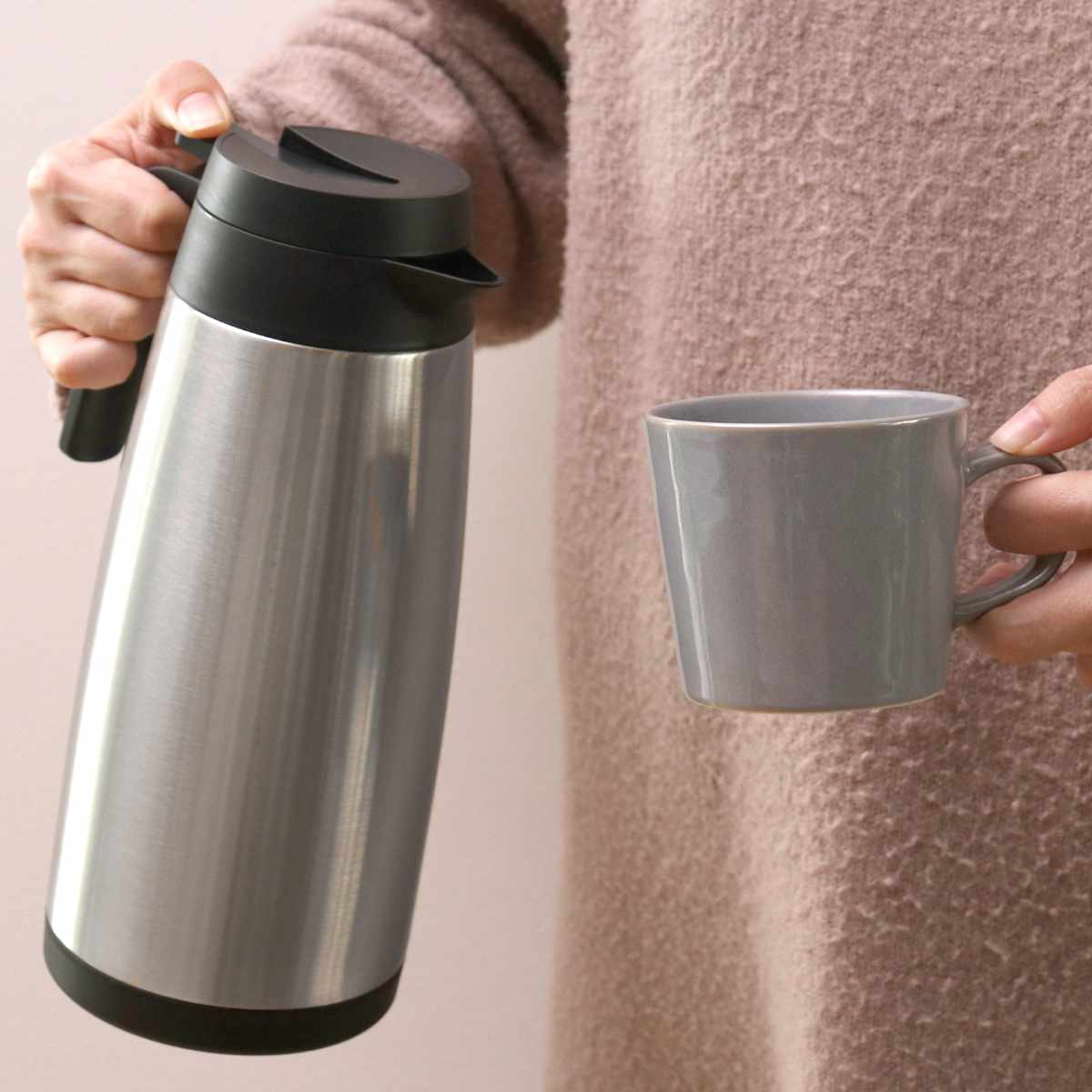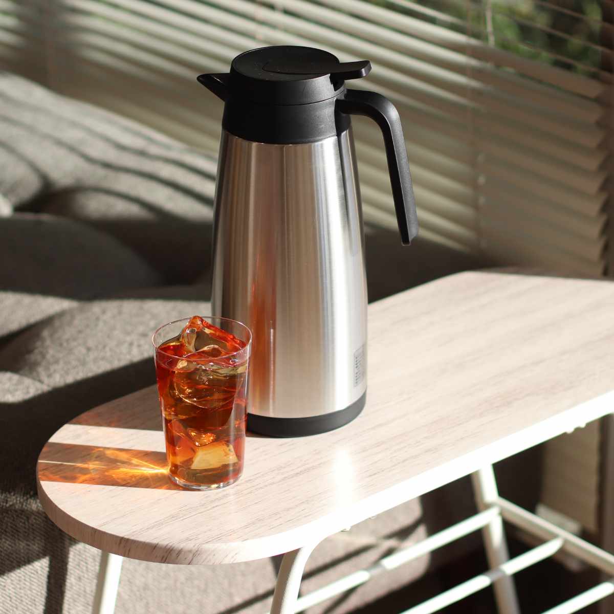 飲み物の温度をしっかりキープできる真空二重構造のテーブルポットです。お友達や家族が集まる場面でも大活躍のサイズです。電気を使わず保温・保冷のどちらにも対応します。丈夫で長持ちするステンレス製です。