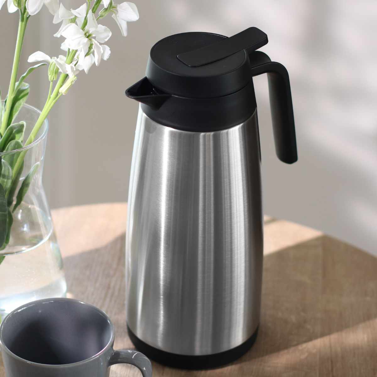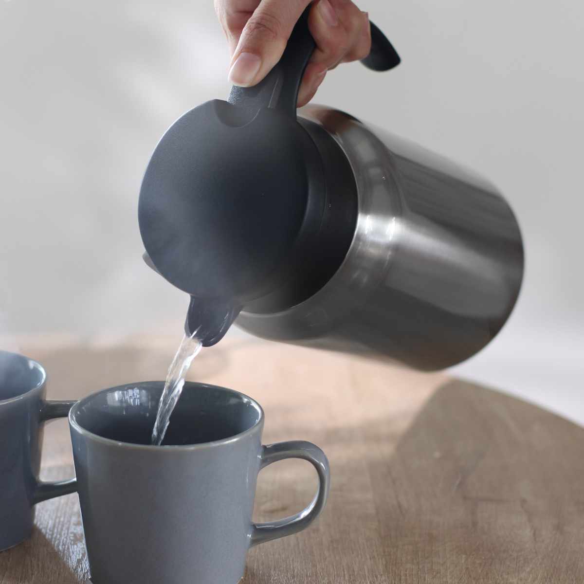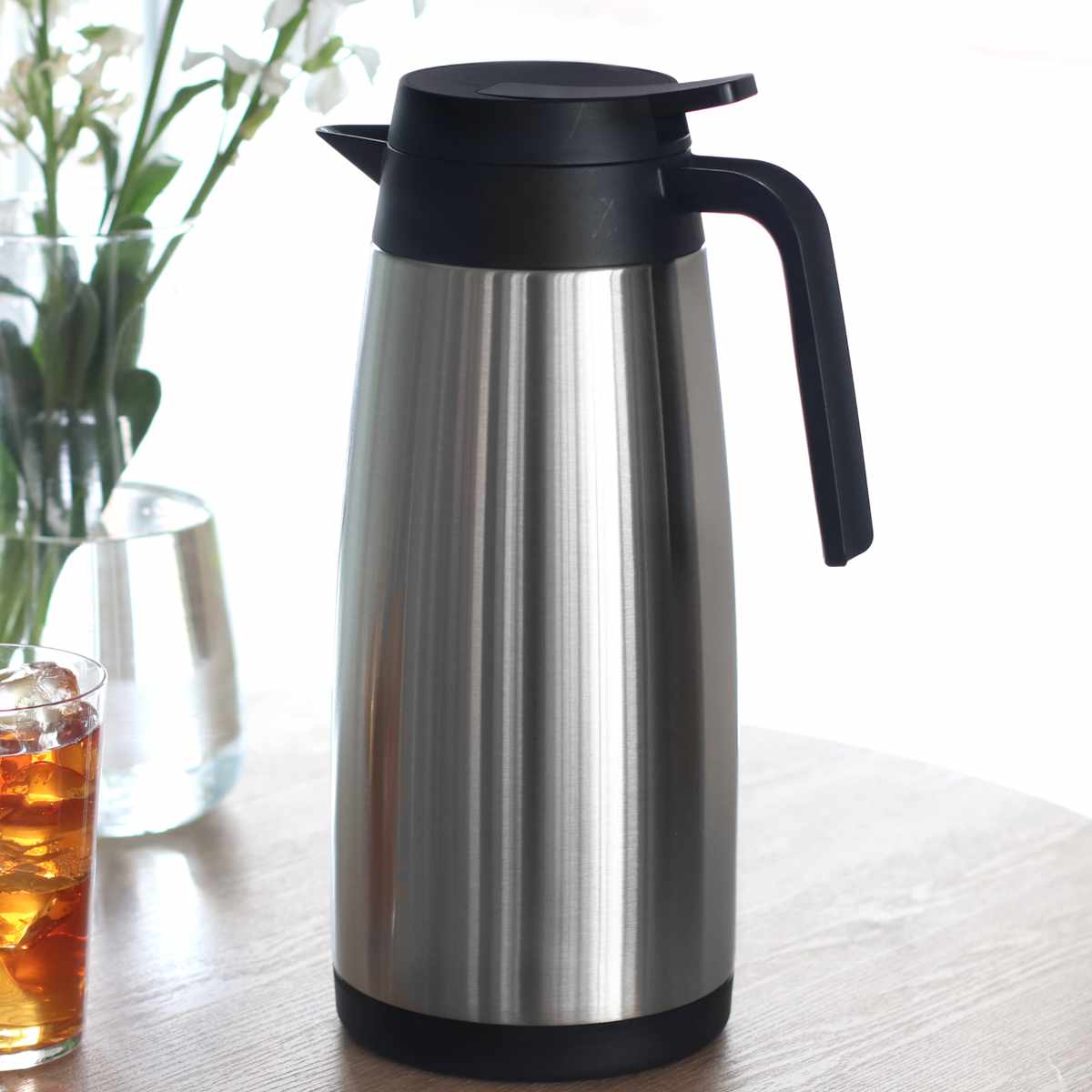 飲み物の温度をしっかりキープできる真空二重構造のテーブルポットです。お友達や家族が集まる場面でも大活躍のサイズです。電気を使わず保温・保冷のどちらにも対応します。丈夫で長持ちするステンレス製です。