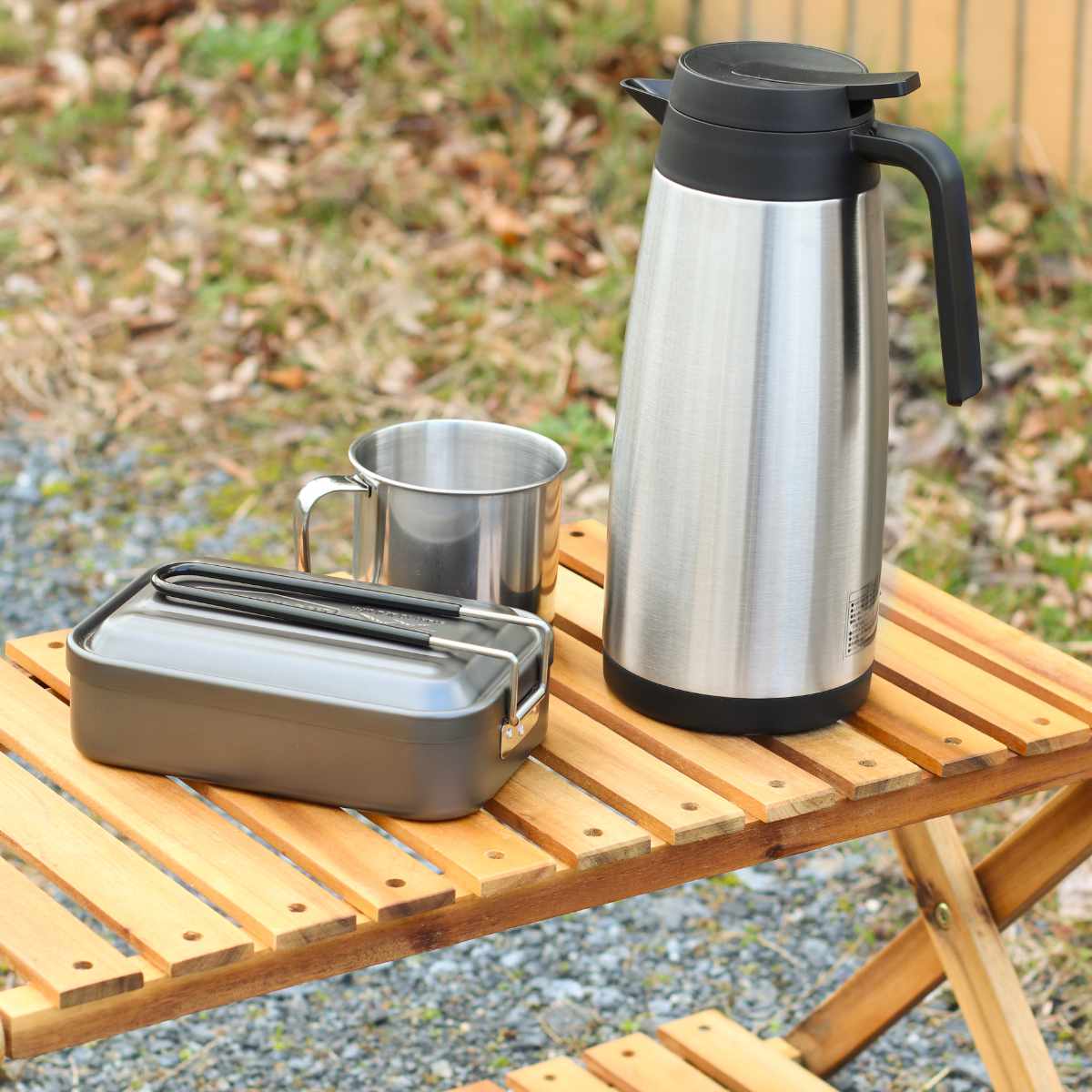 | 材質 | 本体内側:18-8ステンレス鋼 本体外側:ステンレス鋼 口がね・ハンドル・ふた栓・開閉レバー:ポリプロピレン パッキン:シリコーンゴム |