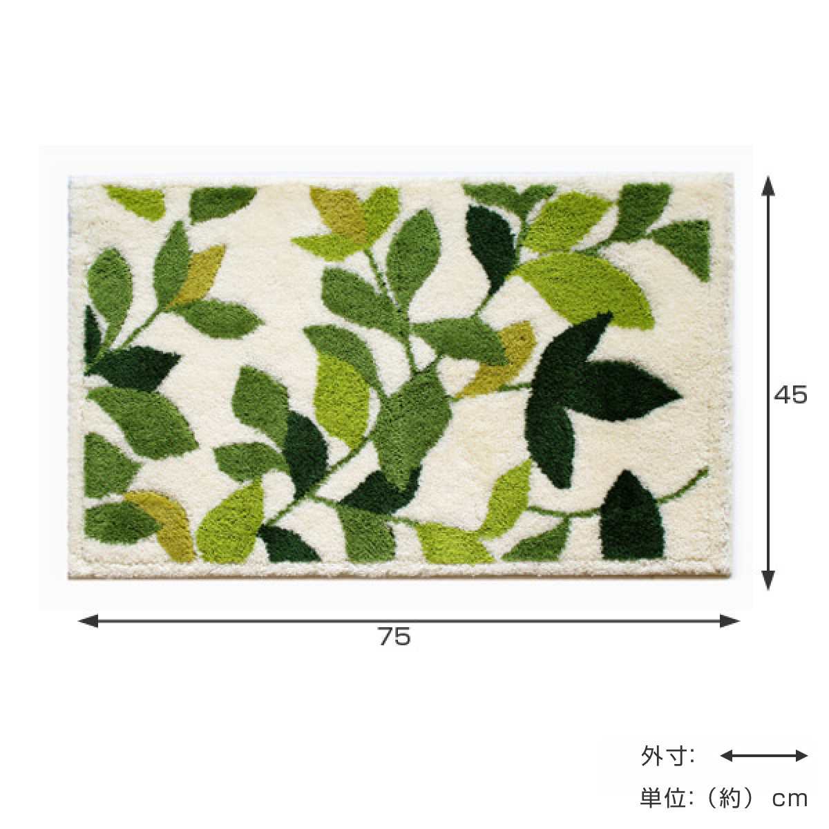 玄関マット 室内 コーナー吸着 リーフグリーン2 45×75cm ( 玄関 マット 洗える エントランスマット 滑り止め 45×75cm ナチュラル 抗菌 防臭 すべり止め ノンスリップ おしゃれ )