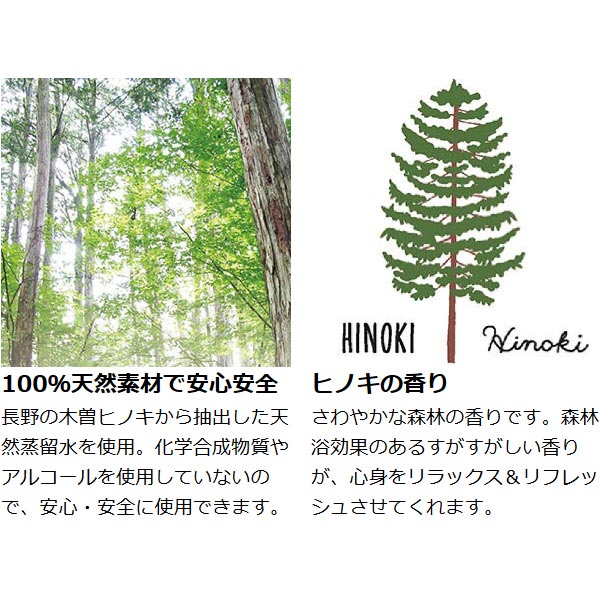 | 材質 | 天然木曽ヒノキ蒸留水、天然精油 |