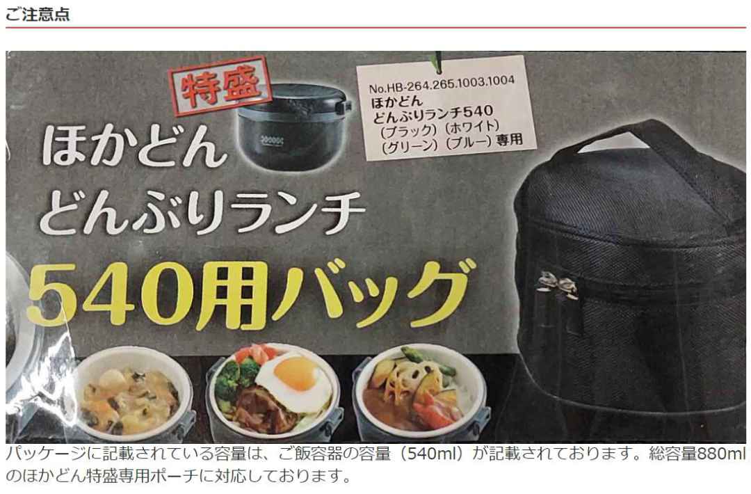 | 備考 | ※専用バッグには保温効力はありません。 ※特盛サイズ専用 |