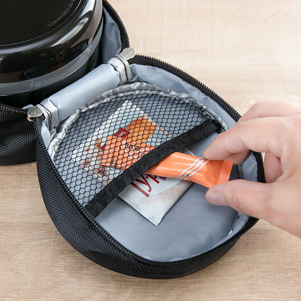 ●ランチバッグを開けると裏側にはメッシュポケットが付いており、ふりかけや小物を入れられて便利です。