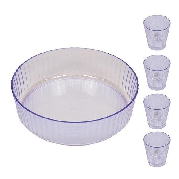 涼蒼 そうめん盛鉢 30cm つゆ鉢4個セット プラスチック製 日本製 ( そうめん鉢 大鉢 小鉢 素麺鉢 和食器 アクリル 割れにくい 盛鉢 クリア ガラス風 )