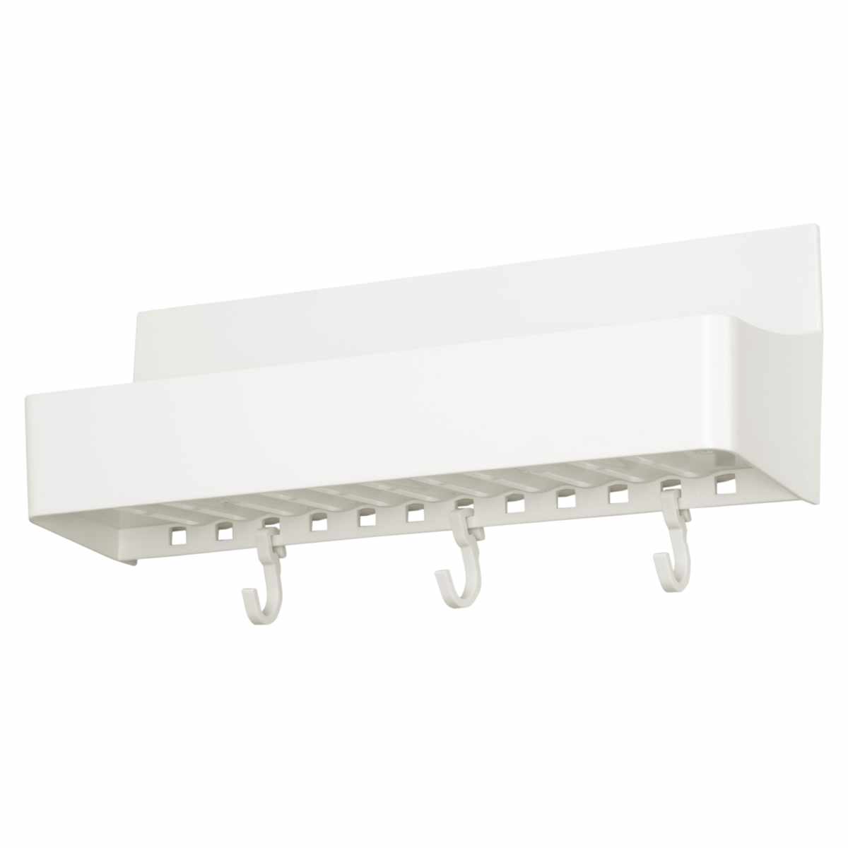 バスルームで使う小物などを吊るすのに便利なフックが3個付いています。壁につけたくない大きなものはスリット穴の間に、壁に付かない小物は壁側のフック穴に付けたりと、取り付け位置は自由に変えることができます。